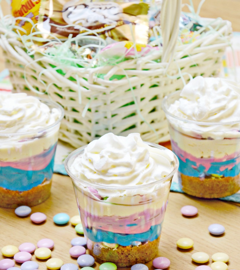 We’ll be serving the no bake cheesecake cups to guests in the morning after my daughters find their baskets from the Easter bunny. Get inspired with additional creative Easter ideas for a fun holiday featuring your favorite candy. What special treats will you make for Easter?
