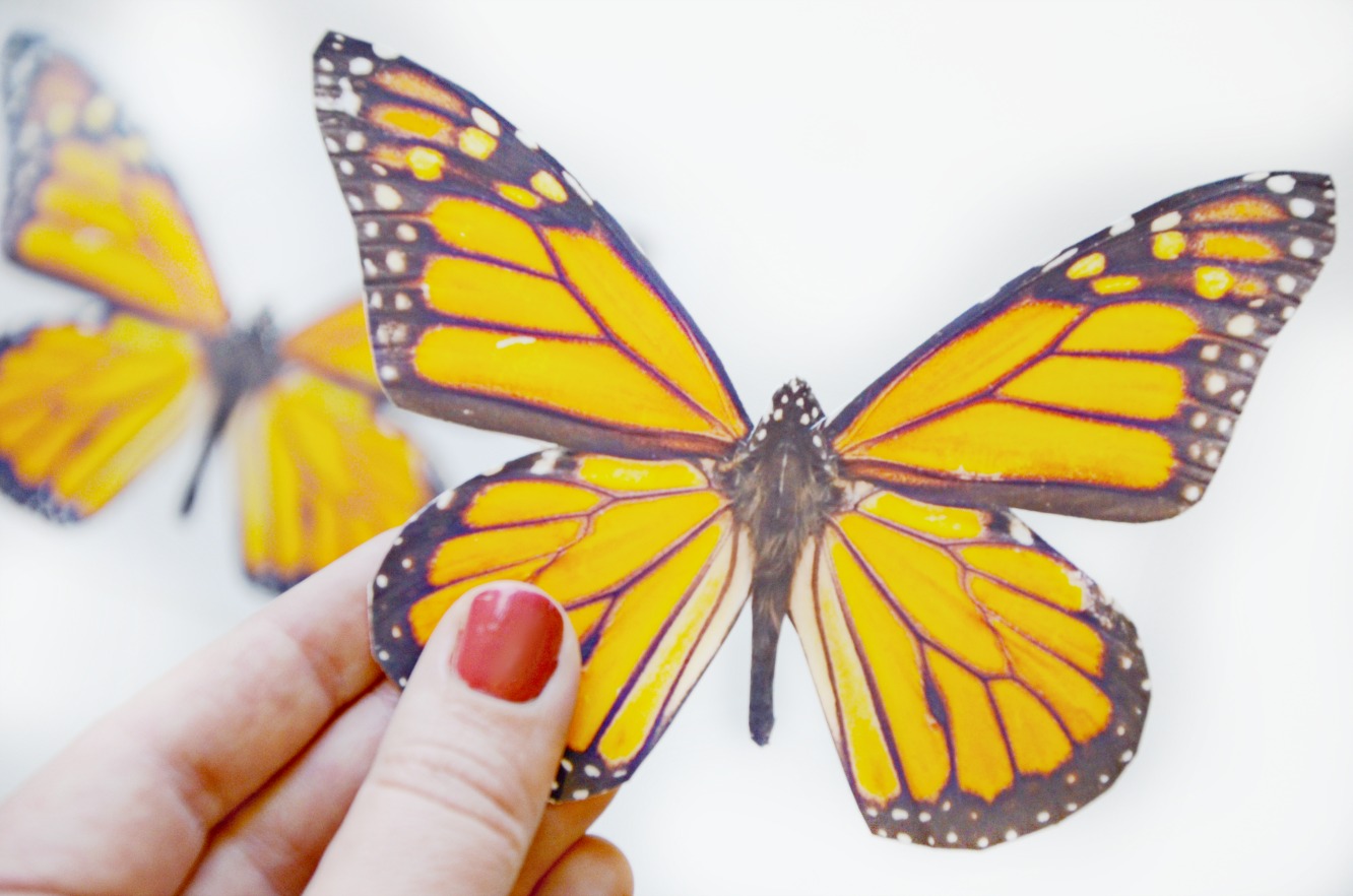 I created a butterfly print on PicMonkey then printed it on 4×6″ photo paper with my home printer. I quickly printed a few more with my HP Envy courtesy of the #HPSmartMoms ambassador group. I carefully cut out the butterflies using scissors.