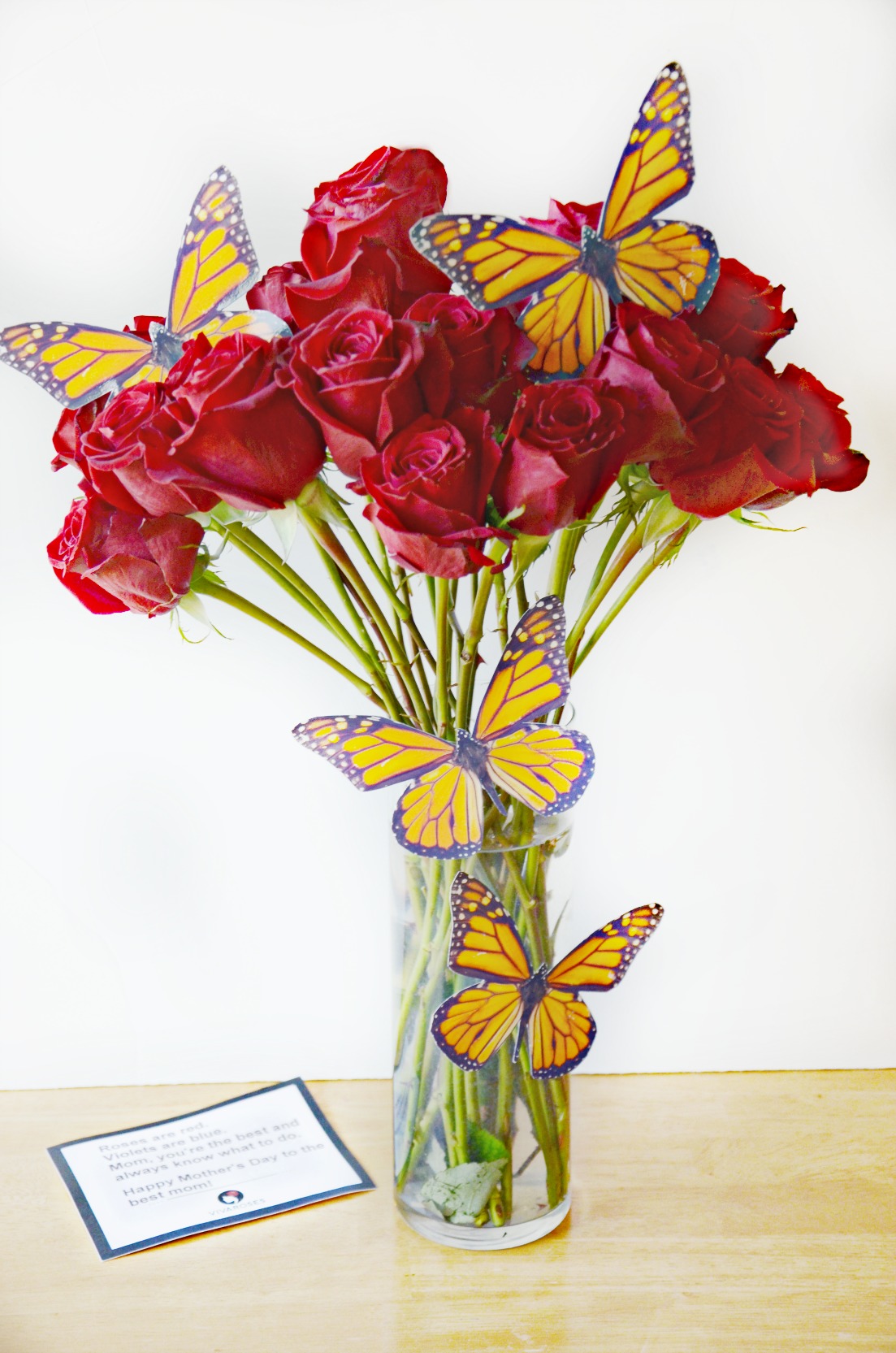 With Mother’s Day right around the corner, it’s time to make sure your flowers are ordered and any DIY projects are wrapped up! This week I received complimentary flowers from VIVAROSES and dressed up a plain vase with butterflies I printed from my home computer on photo paper. The easy butterfly vase is the perfect gift for Mother’s Day and I’m looking forward to ordering more flowers!