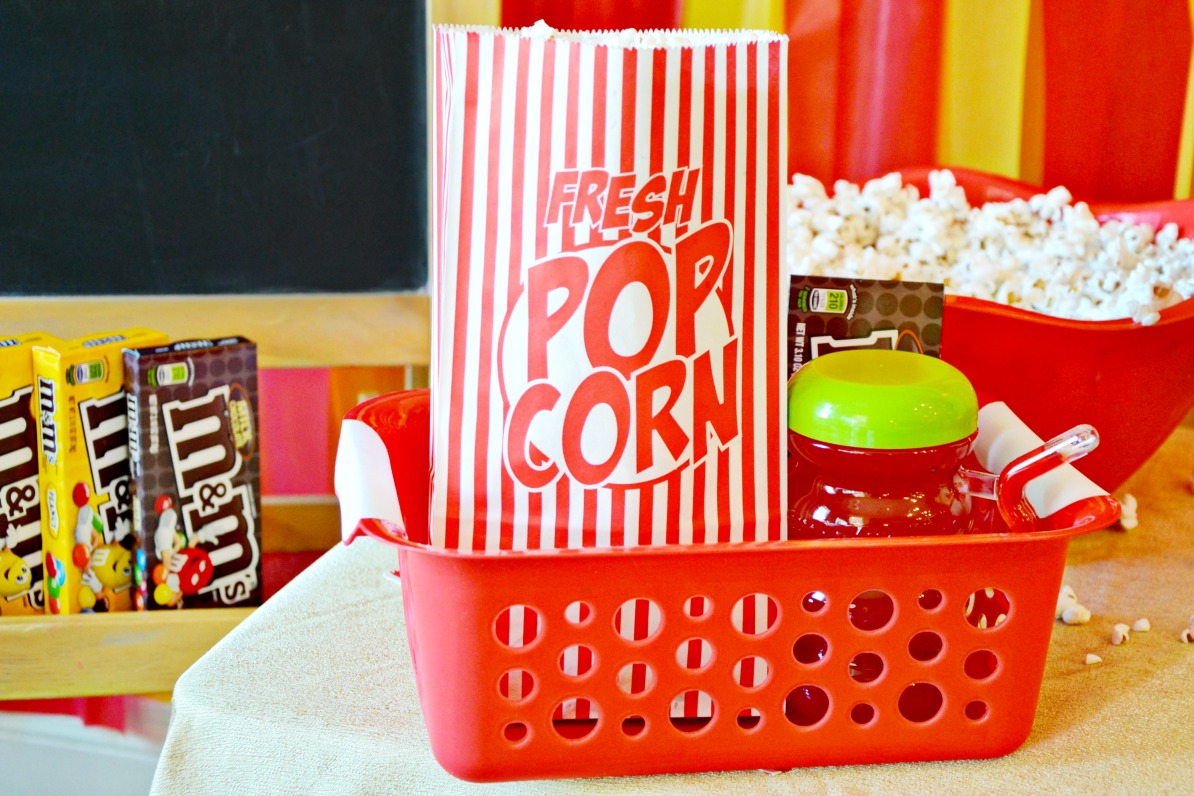 Small organization bins are perfect to carry all your movie night snacks to the couch. Each family member had their own bin with favorite treats, popcorn and drink.