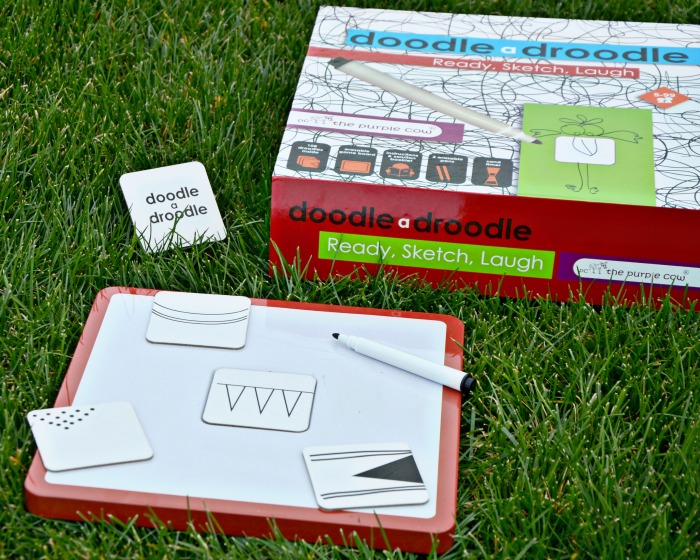The Doodle a Droodle drawing game is a drawing game with riddles for kids. Droodles are silly nonsense sketches where players have to guess the drawing. The game includes a magnetic board, doodle prompt cards and dry erase marker.