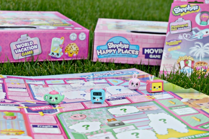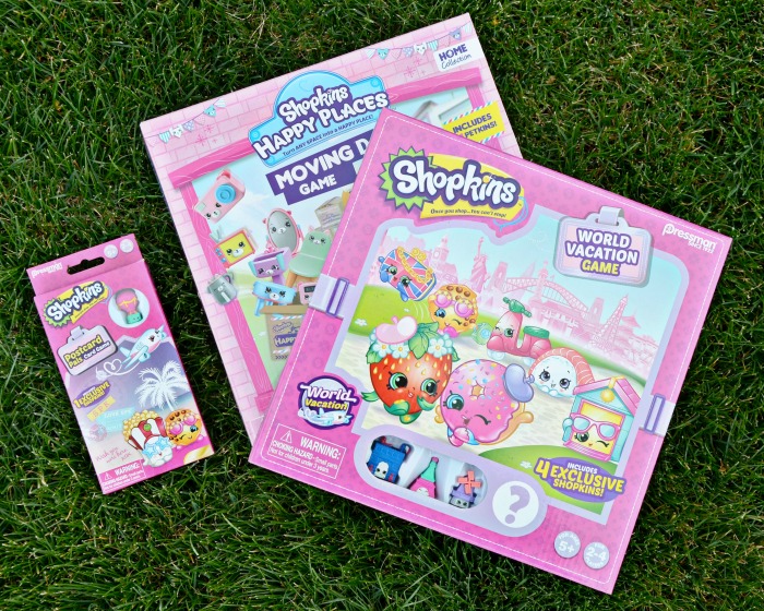 With two daughters, Shopkins are very loved in our home. Our youngest daughter is almost three and loves sneaking into her sister’s room to “borrow” her favorite toys. Our new games have been a fun way for both our daughters to play together. The Shopkins Moving Day board game, Shopkins World Vacation game and Shopkins Postcard Pals card game have been great for both our daughters.