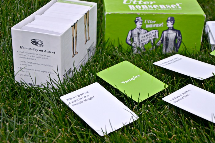 Utter Nonsense! Family Edition is a family game where players have fun saying nonsense phrases in silly accents. Pull a phrase card and accent card then talk in your best accents for family fun. “When I grow up I want to be a lifestyle blogger,” said in your best vampire accent – you know you just whispered it to yourself!