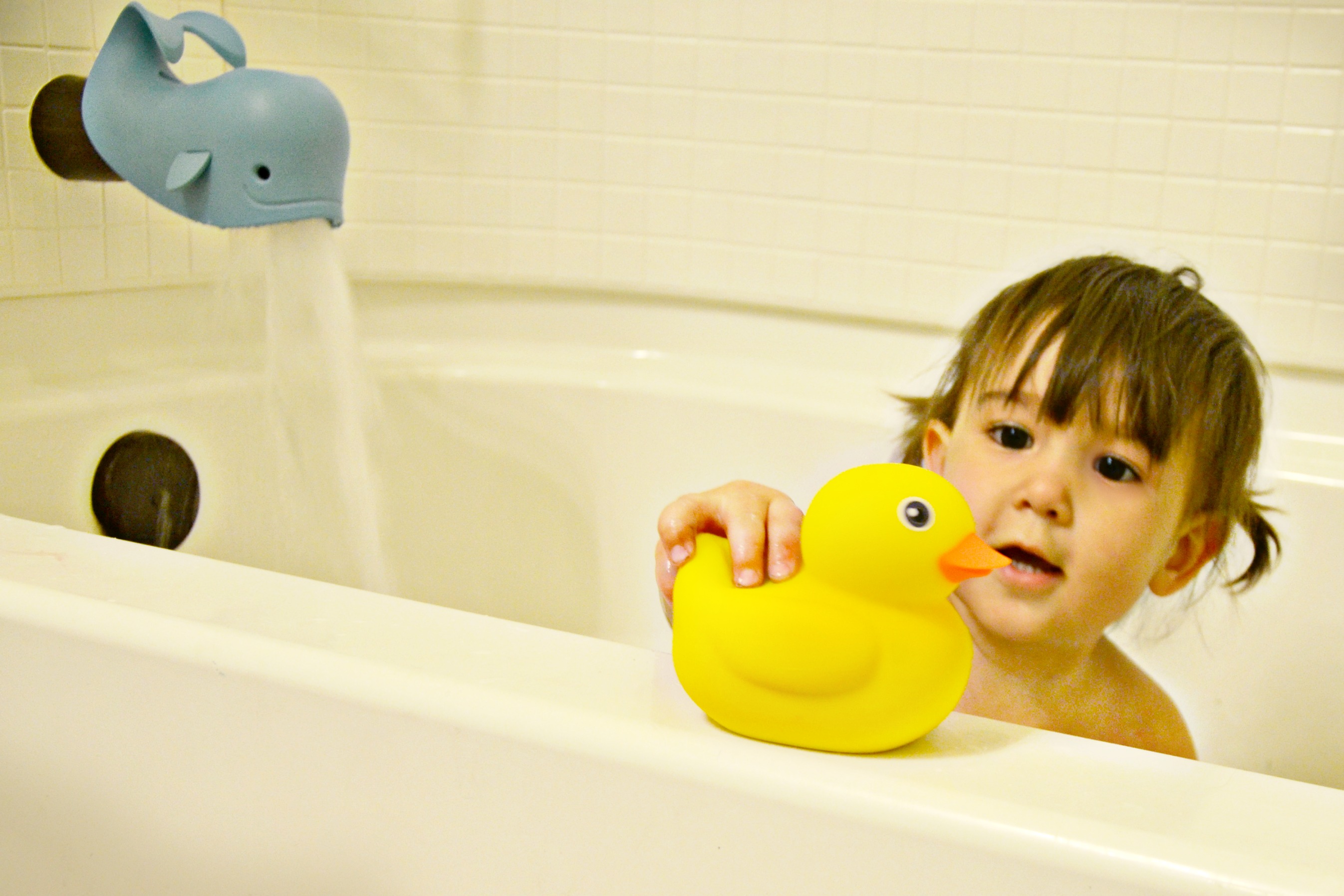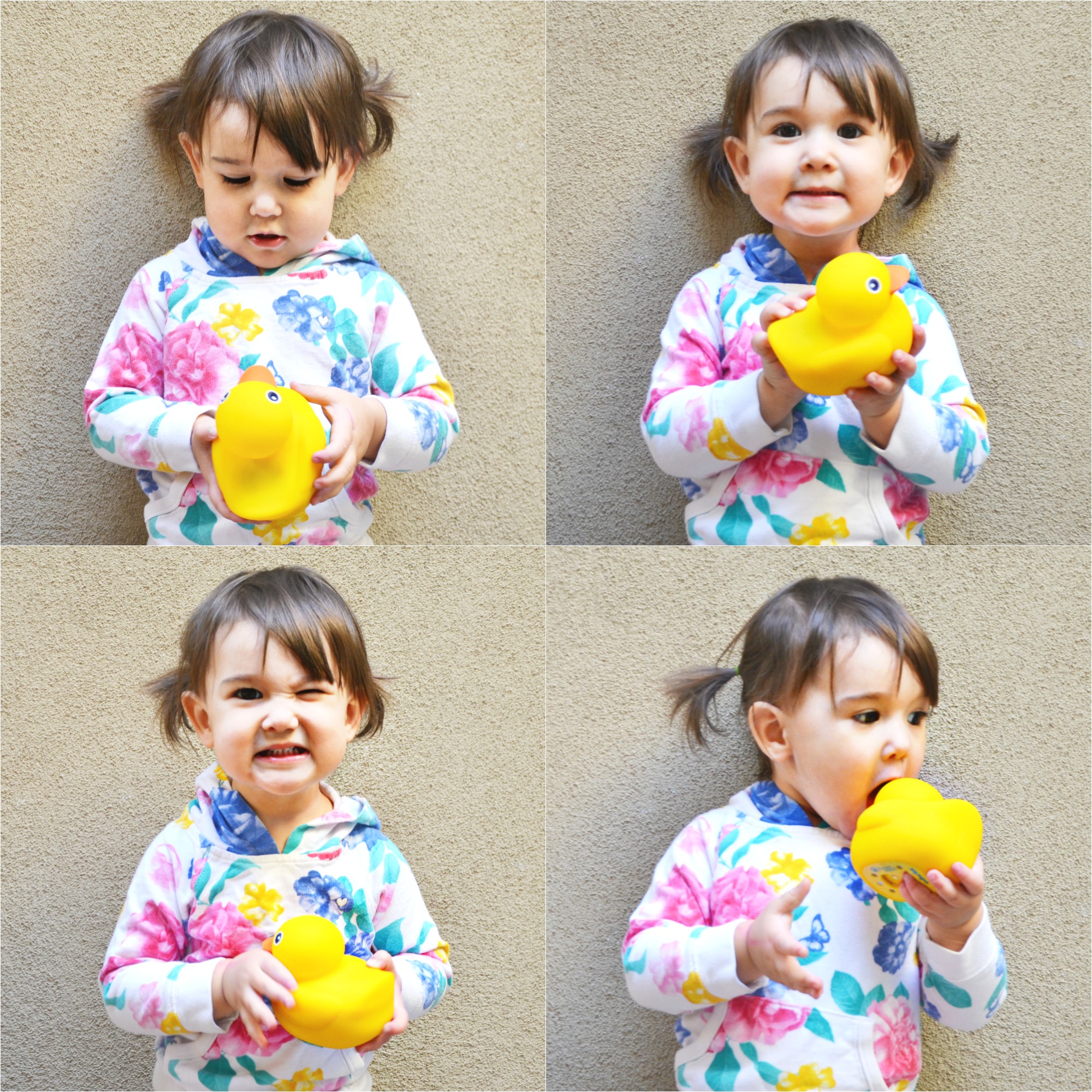 By this point, baby sister already had decided she would love Edwin the Duck forever. Posing for a few photos with her new BFF was no problem. Those sweet moments watching her light up and sing with her new duck were the sweetest. Then she tried to eat him….or maybe give him a big kiss that, on camera, looks more like she’s assaulting the poor guy. Luckily Edwin is made of soft surgical-grade BPA-free silicon.