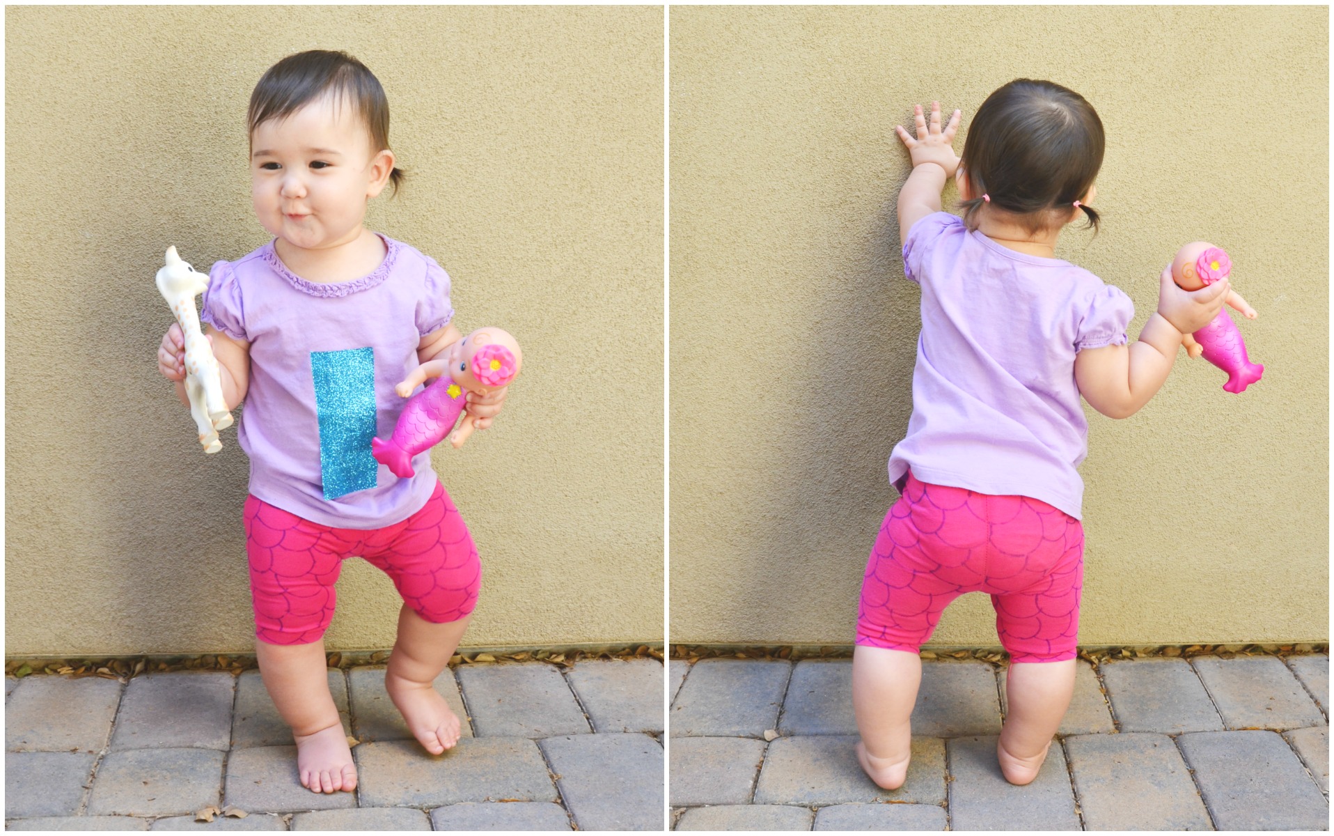 The birthday girl wore the cutest little mermaid outfit and was so happy celebrating her special day. I made her mermaid pants by simply tracing a circle with a fabric pen to create scales on leggings. Her shirt had a sparkly iron on number.