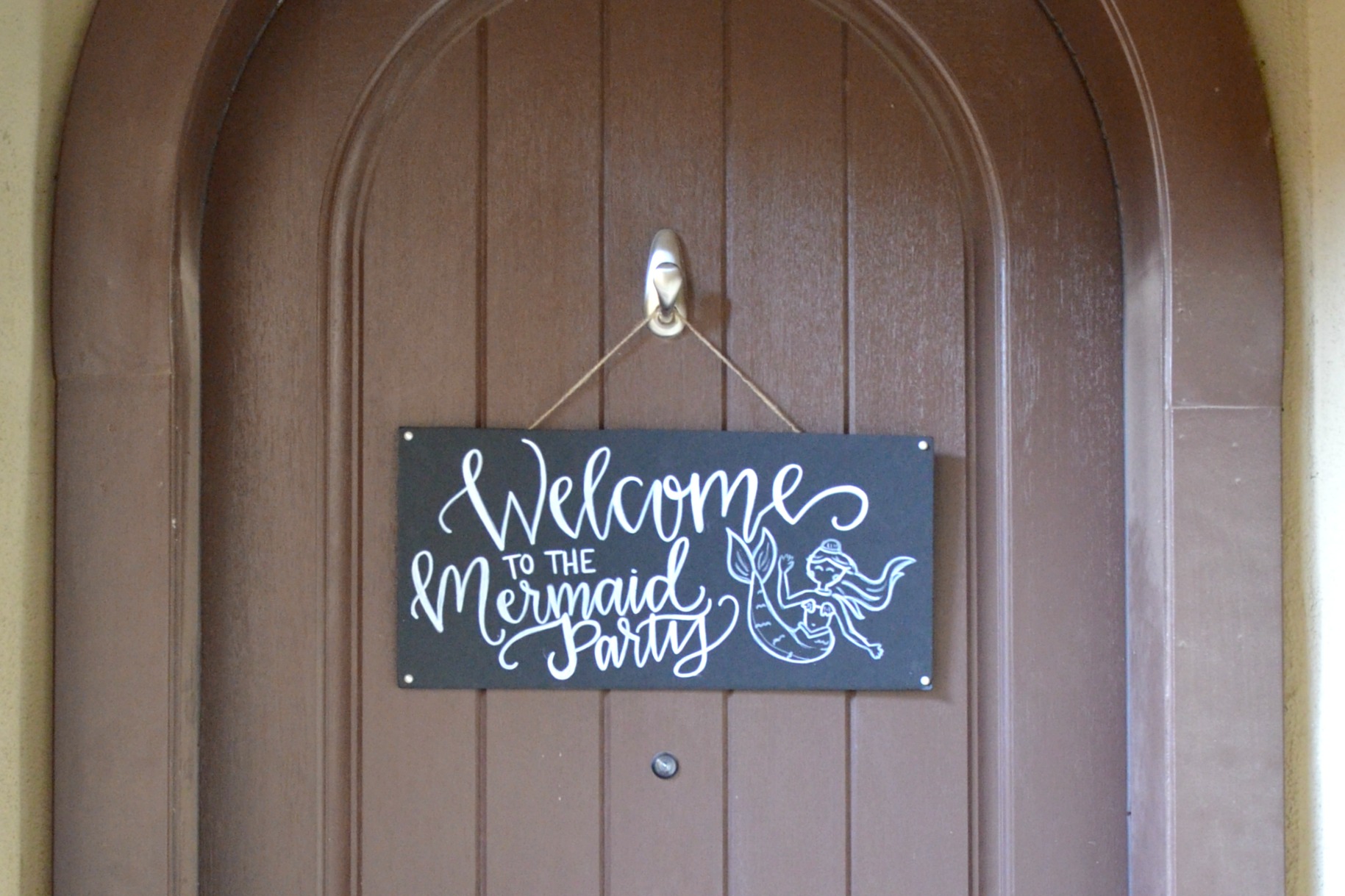 When guests arrived they were greeted by a “Welcome to the Mermaid Party” sign made by Alexis + Bolt. The mermaid on the sign exactly matched the mermaid on the Minted.com invitations.
