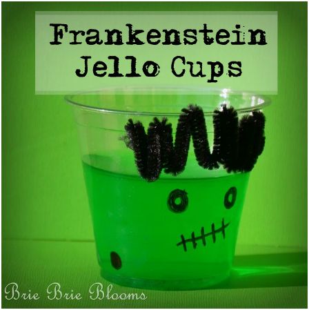 Last week we brought snacks for my daughter’s preschool class. She was very excited to share Frankenstein cups! I’ve seen so many green pudding cups with funny faces drawn but I wanted to avoid adding dye to pudding. I used one of my daughter’s favorite snacks, Jello, instead.