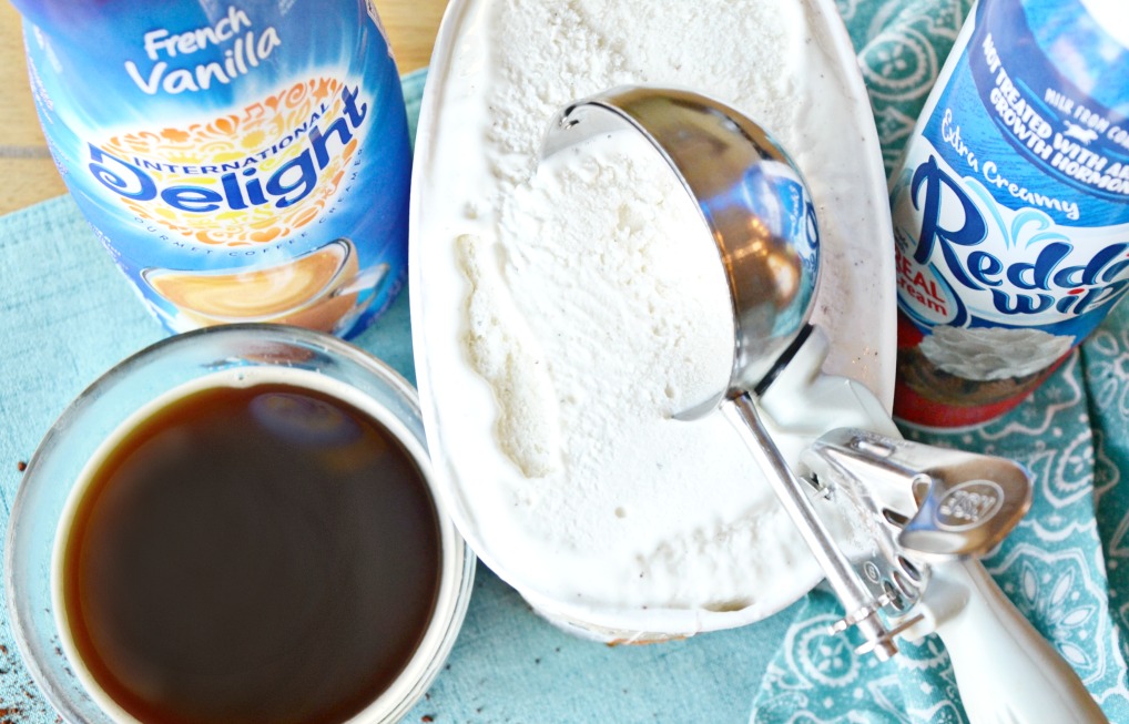 International Delight creamers and Reddi-wip are stocked in our refrigerator year round. Morning coffee is my thing and I usually alternate between International Delight French Vanilla and International Delight Caramel Macchiato creamers. Reddi-wip is also a favorite in my morning coffee. During summertime, we always have ice cream too. If you don’t have coffee, I’m sure it’s just because you’re in the middle of a very hectic summer schedule and just this morning drank the last cup like me. Odds are you already have everything you need to make this yummy drink.