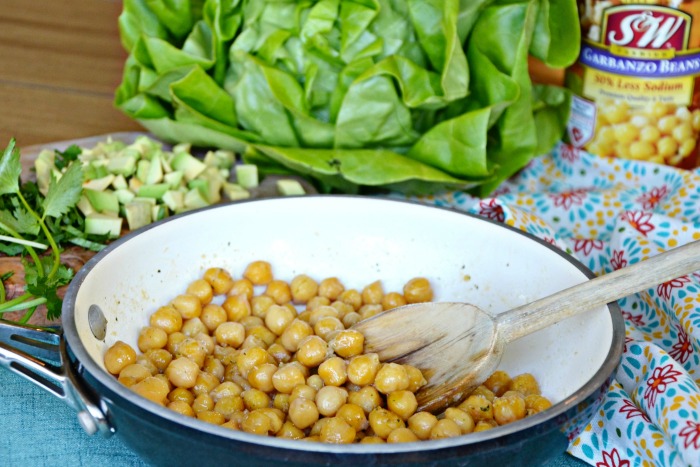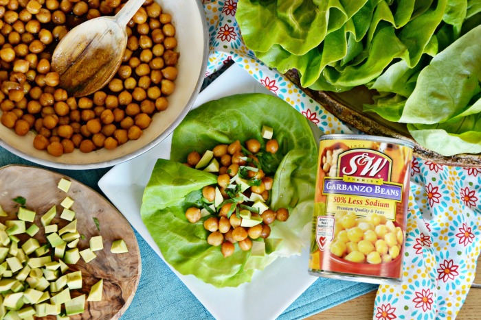 This year I made a commitment to cooking more meals with variety. Like every busy family, we had fallen into a comfort zone and heavily relied on a short list of quick go-to recipes. With a very picky nine year old daughter, we weren’t helping her eating habits by only offering meals she already liked. Having a good stocked pantry with versatile foods like S&W Beans and a weekly visit to our farmer’s market makes it easy to incorporate new recipes each week. My Garbanzo Beans Lettuce Wraps recipe is quick to prepare with an alternative protein while easily getting in a serving of veggies packed full of flavor.
