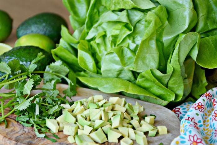 While beans are cooking, prepare avocado, cilantro and lettuce. Chop avocado and cilantro. Wash and peel lettuce in full leaves.