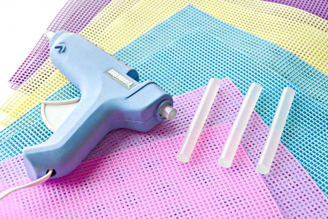 • brightly colored mesh plastic canvas (multiple sheets for placemat background and shapes)