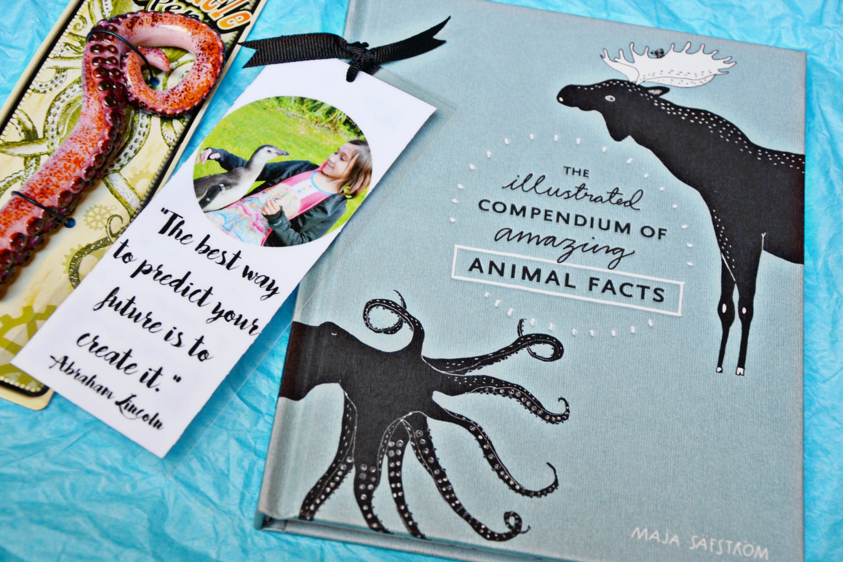 You can’t go wrong with your favorite animal book – The Illustrated Compendium of Amazing Animal Facts, a DIY bookmark and Octopus Tentacle Pen!