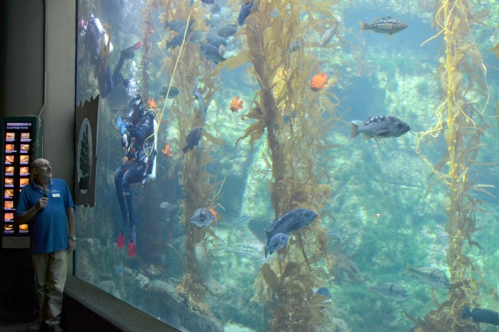 Another first this week for us was visiting the Birch Aquarium. With many learning opportunities specific to the California coast, my daughter was amazed by the fish. The kelp forest educational talk and watching the scuba divers clean the tank were favorites activities of the day.
