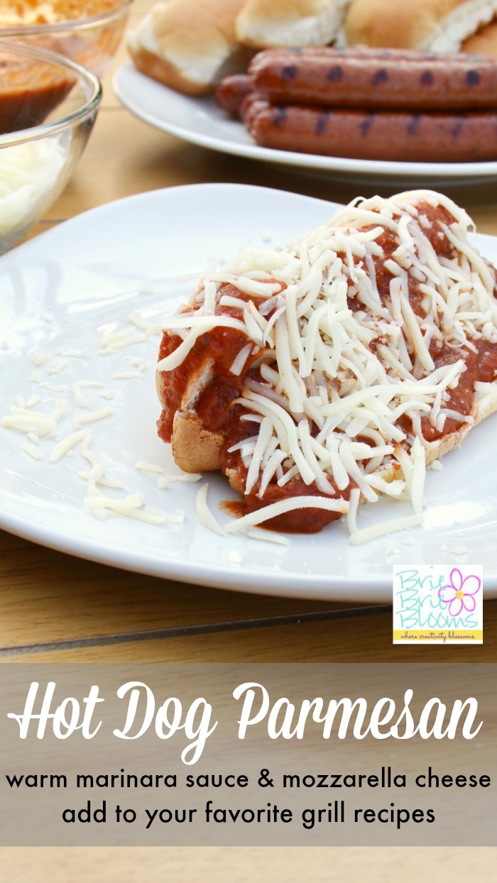 Arizona summers are hot but with sprinklers on the grass and misters around our patio, playing outside and grilling are favorite activities at our home. We grilled this weekend and enjoyed adding to our favorite grill recipes with the hot dog parmesan. My husband is Italian and loves pasta with marinara sauce and cheese. He grew up eating his grandfather’s homemade sauce and enjoys making the family recipe at home. To avoid conflicting meal ideas, homemade sauce and summer grilling, I combined the two to make a delicious new recipe. The hot dog parmesan uses warm marinara sauce and mozzarella cheese to add Italian flavor to your favorite grill recipes. We grilled Parks Finest™ Frankfurters from Ball Park® and enjoyed dinner outside after my daughter ran through the sprinklers.