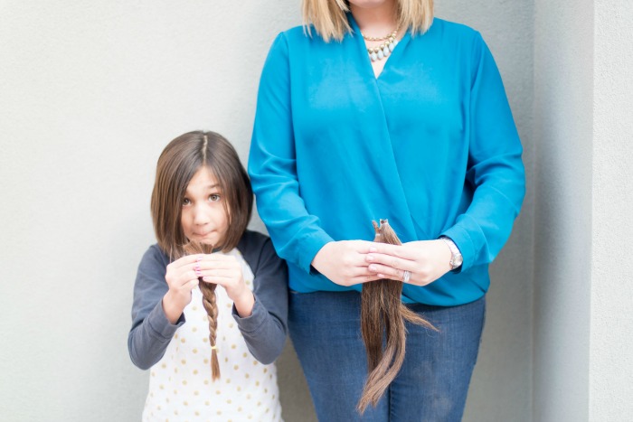 While our families were enjoying a holiday break full of baking, gift wrapping, and joyous festivities, another family was experiencing the unimaginable tragedy: the death of their child. It wasn’t until after my daughter returned to school from a wonderful holiday break did she learn a classmate with cancer passed away due to an unrelated illness. That first day back from holiday break my daughter came home from school and said she wanted to cut her hair. She wanted to cut her hair and donate it to children with cancer. Little did I know I would be cutting my long hair that week too. Although our reasons were not the same, we both cut our hair to help make a difference.