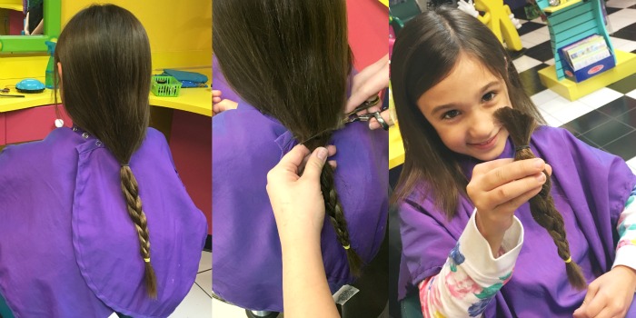 We went to the salon, a place she had been many times before, with a mission to cut her beautiful long hair. The stylist made a long braid and let my daughter take one last peek before using her scissors to solidify the irreversible decision. My daughter was proud as she held her braid for a photo before tucking it away in an envelope for a later donation.