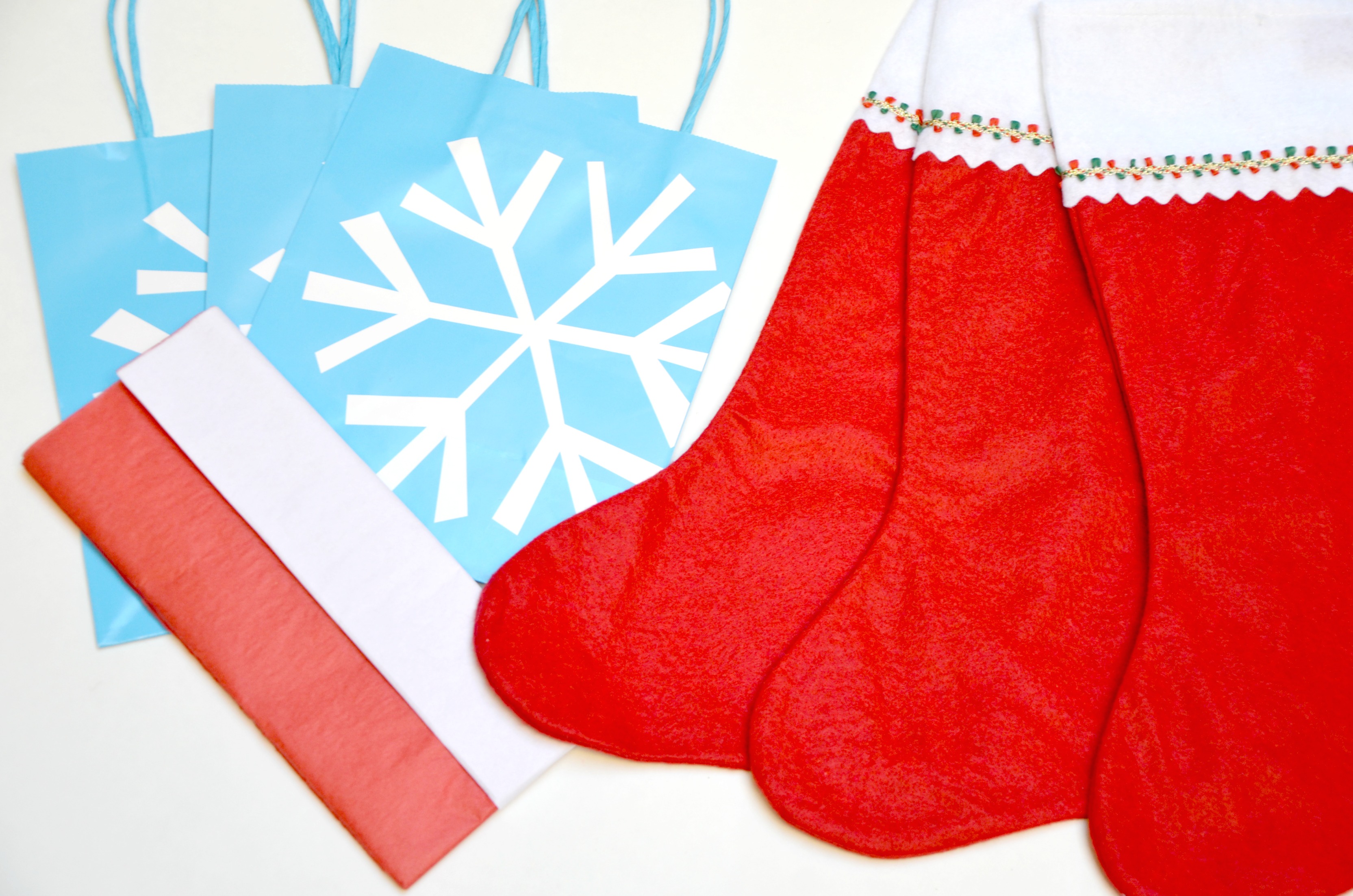 Holiday gift bags, blank stockings and tissue paper make it easy to wrap gifts and quickly get out the door when you realize you forgot all about that party invitation you found shoved in your child’s backpack last month.