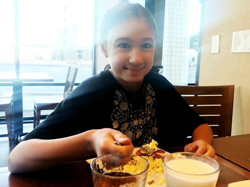 Each morning we ate at the complimentary hot buffet and our oldest daughter actually said it was the best breakfast she had ever eaten on a school day. I’ll take that as a compliment given we were right in the middle of the most chaotic move. Every day offered a different menu with favorites like biscuits and gravy, pancakes, a southwestern egg burrito and waffles. There was also plenty of coffee for me in the well stocked coffee and tea breakfast station.