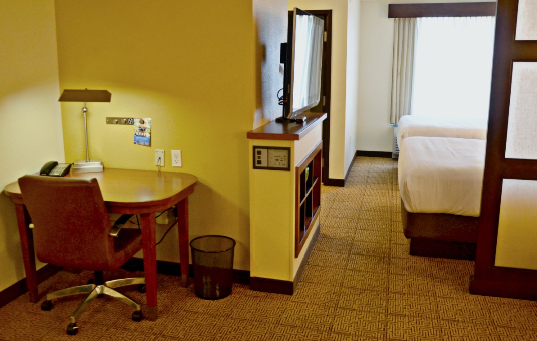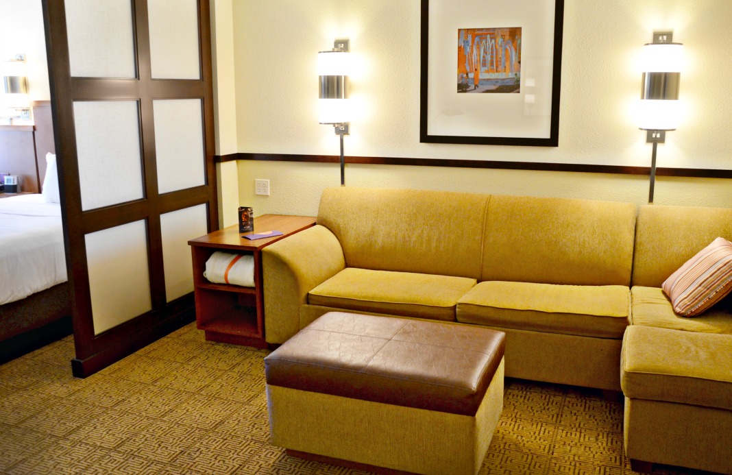 We love Gilbert, Arizona; so much that we have moved three times in the last 10 years and all our homes have been within about 15 minutes of each other. The quaint farming town is quickly growing and has been named as one of the top places to live in the United States. In 2014 24/7 Wall St., a New York-based financial news and opinion website, ranked Gilbert as the 20th top place to live in our country. The 100 acre wildlife Riparian Reserve along with many other notable recreational activities add to the appeal. The year round sunshine provides the opportunity for many outdoor adventures and Gilbert is perfectly situated with freeway access to enjoy all our beautiful state has to offer. The Hyatt Place Phoenix Gilbert is an excellent option for Arizona weekend getaways, guests during the holidays or like us, when you’re transitioning with a move in Gilbert. All of the spacious guest rooms are suite style providing a bedroom, bathroom and living space with couch, work station, refrigerator and microwave. Staying for multiple days without access to our home kitchen meant we really needed to be able to bring home restaurant leftovers and reheat meals during our weeklong stay. The kitchen area in our room was used often during the week.