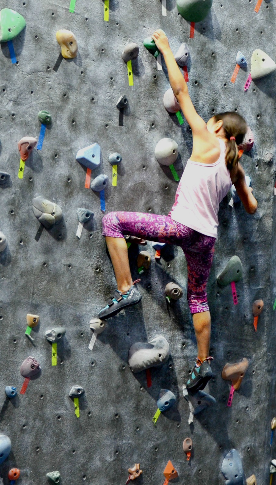 At only eight, she recently moved from a team practicing with peers closer to her own age to the competitive team with older teammates. She’s not quite lead climbing yet but she is doing more bouldering on higher walls. That means she’s climbing without ropes and developing muscle strength in places you wouldn’t know how to strength train otherwise. She has strong wrists and her core is more defined everyday.