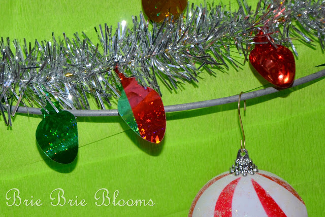 The dollar store garland and our extra star adds some sparkly fun to the tree. I also borrowed a few non breakable ornaments from our family tree.
