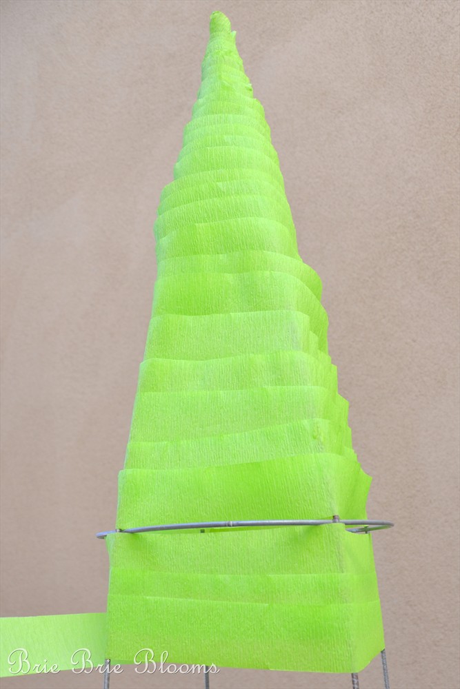 Continue wrapping the streamer around the entire wire cage. Add a few random spots of glue to hold the streamer in place.