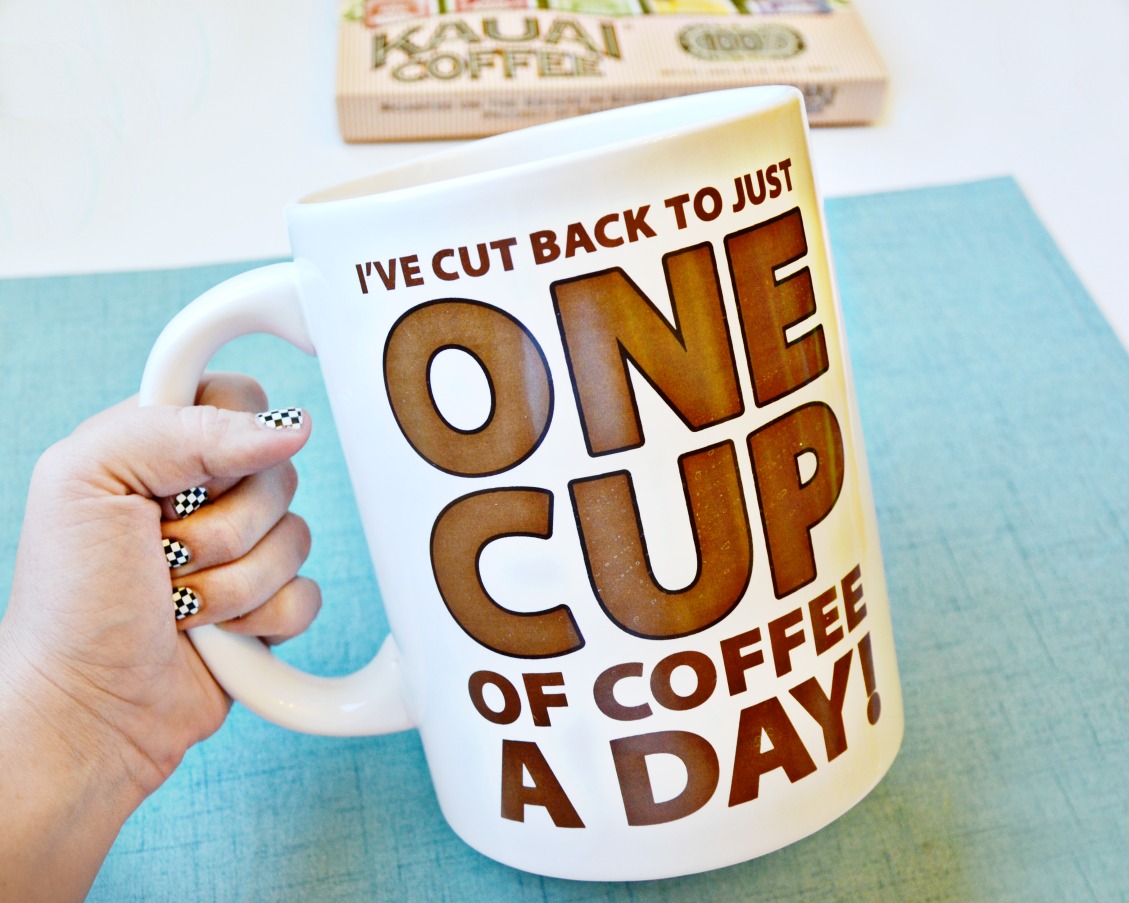 Over a year later, the Kauai Coffee sampler made a perfect Father’s Day gift for my husband paired with a Big Mouth Inc. Gigantic Coffee Mug so he can try more than just his favorite Kauai Coffee brew every morning and be reminded of our favorite family vacation. Since coming home from Kauai last year he has ordered the coffee monthly to be shipped from Hawaii to brew in our home pot everyday. This mug speaks volumes to his idea of cutting back to just one cup of coffee a day…Kauai Coffee that is!