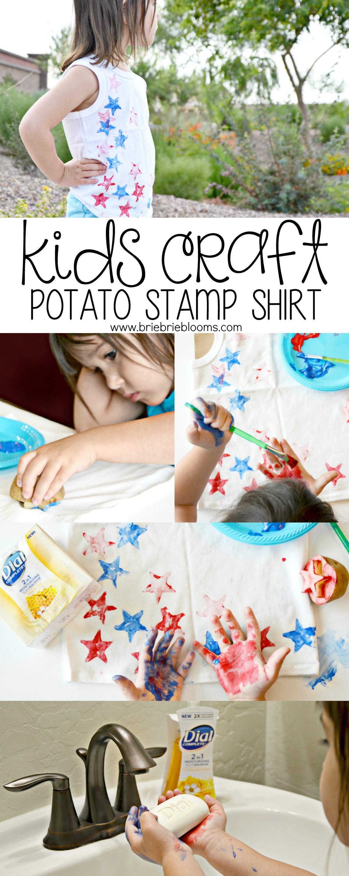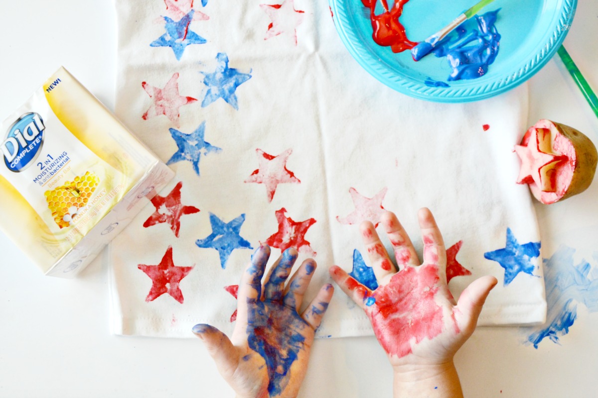 Summertime crafts are in full swing at our house. That also means we have many messy hands to clean over and over all day long. My oldest daughter has always loved arts and crafts but she is on the more conservative side when it comes to getting paint and glue on her hands. Little sister is like a tornado with a paint brush and manages to get everything everywhere in just a few minutes. Luckily we are fully stocked with Dial Complete® 2 in 1 Moisturizing & Antibacterial Beauty Bar and Foaming Hand Wash. America’s beloved soap brand of 70 years just broke through with a new lineup that’s both antibacterial and moisturizing making it a fantastic new 2 in 1 soap perfect for all our summer messes. We recently purchased the Manuka Honey Dial Complete® 2 in 1 Moisturizing & Antibacterial Beauty Bar at Dollar General and it was a great clean up for our kids craft potato stamp shirt project this week.