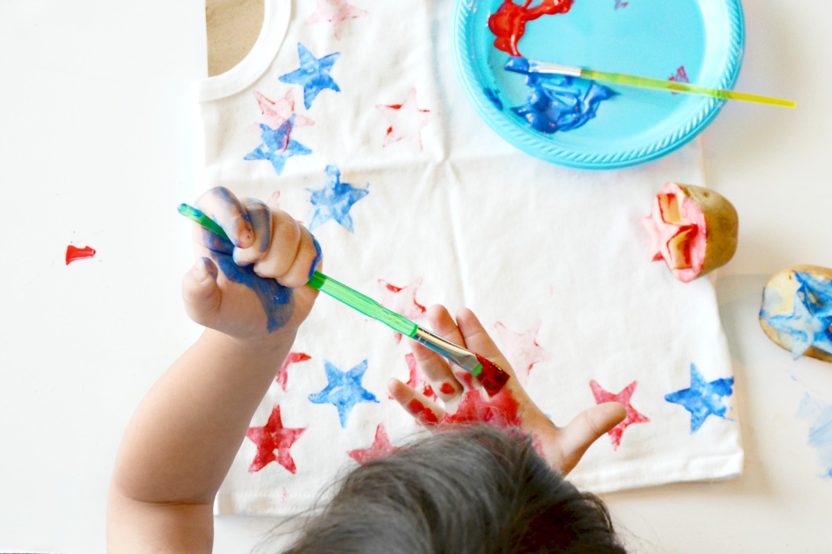 She’ll be wearing her kids craft potato stamp shirt throughout the summer and I’m sure we’ll have many follow up paint projects with more stamping fun.