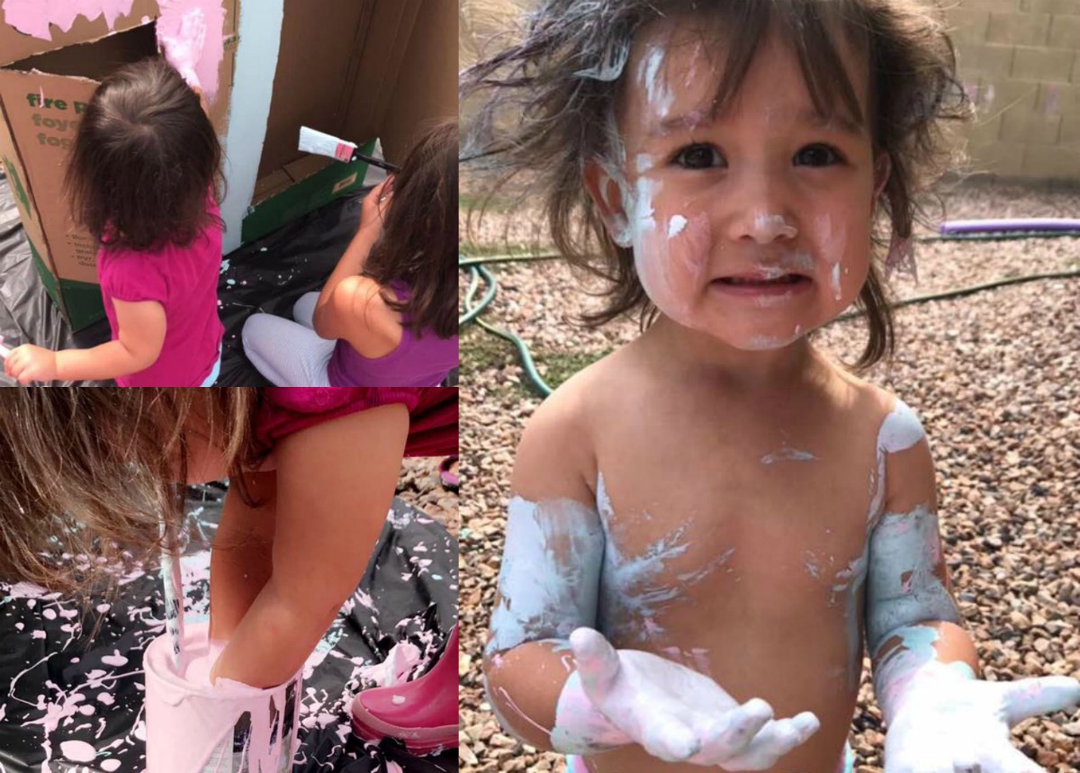 We have always encouraged self expression with art in our home and our daughters know it’s a usual, “absolutely,” when they present an art project idea. Sometimes those incredible ideas aren’t always the best for mom’s clean up and more times than not, they also don’t work in little sister’s favor after the mess has been made. Last summer my daughters asked to make a rocket ship from a cardboard box and paint. What could go wrong?