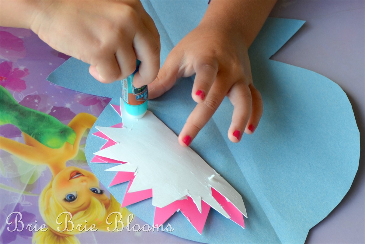 The final step is gluing the mouth, googly eyes, and craft stick to the puppet.