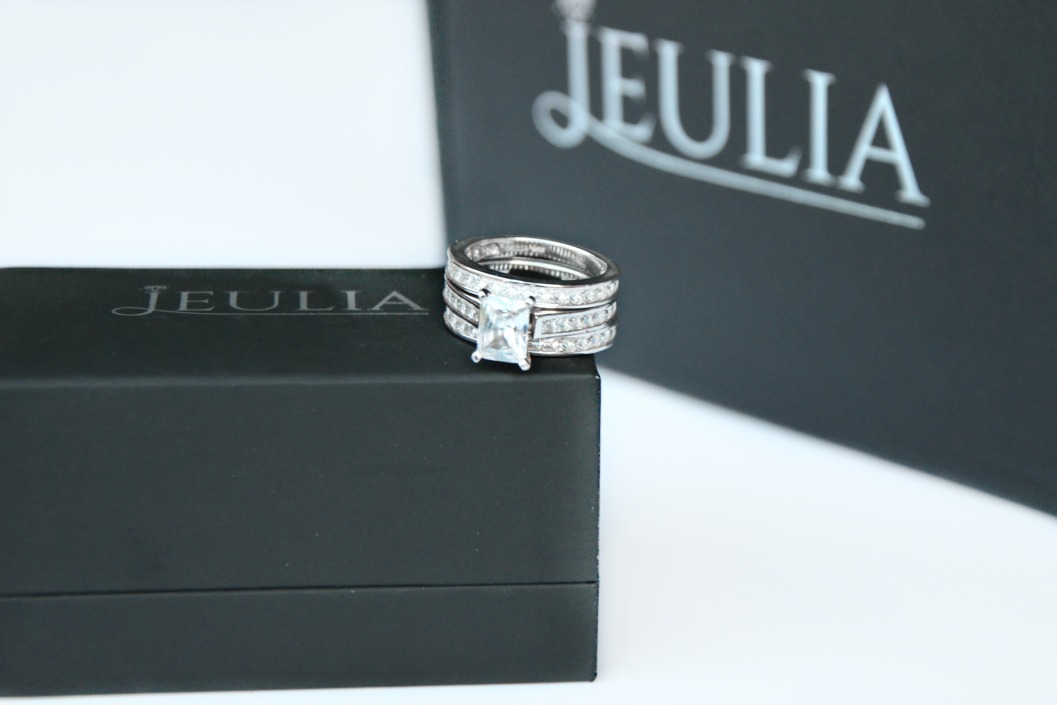 My husband gifted me a second band for our five year wedding anniversary and it wasn’t until just last year that I ever noticed any discomfort while wearing the ring. Slowly it turned from a slight agitation to blisters within an hour of wearing the jewelry. The wedding jewelry was cleaned and there was no improvement to my agitation every time I wore the ring. I saw a dermatologist and was told I had an allergy to platinum. The dermatologist advised my options were to administer a daily shot to reduce my allergy or to stop wearing the jewelry. While I’m still not fully convinced this is the true diagnosis, in the meantime I did stop wearing my loved wedding jewelry and didn’t ever feel comfortable without my ring. Then I was introduced to Jeulia, a jeweler that utilizes environmentally conscious materials to create stunning jewelry at affordable prices. I spent hours looking at the many wedding jewelry sets and then found a ring that looked almost identical to my own platinum wedding set. Unless I mentioned it, you wouldn’t ever notice the 3 piece radiant cut created white sapphire wedding set 3.36 CT TW is not my original wedding jewelry.