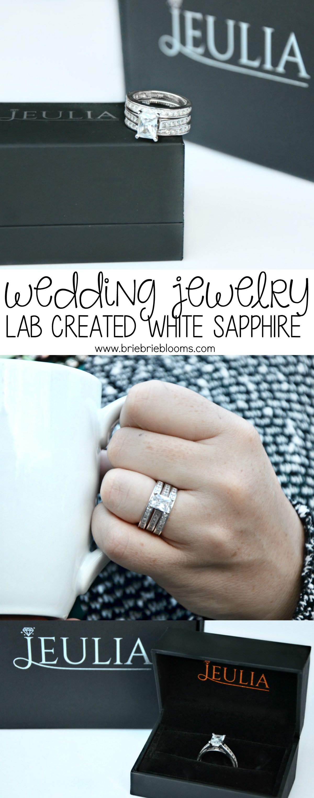 I’m less than a month away from my 12th wedding anniversary with my husband and we just celebrated 15 years since our first date. Our wedding jewelry has such a sweet story and my engagement ring is my most favorite. I’ve worn it everyday for almost 14 years so it was devastating when I learned I had developed an allergy preventing me from comfortably wearing my wedding jewelry. I am exploring treatment options but in the meantime, am so happy with the new jewelry I’m wearing daily that is almost identical to my original platinum wedding set. The lab created white sapphire in a sterling silver setting from Jeulia is stunning and helped me overcome the grief of not being able to wear my very loved original wedding jewelry.