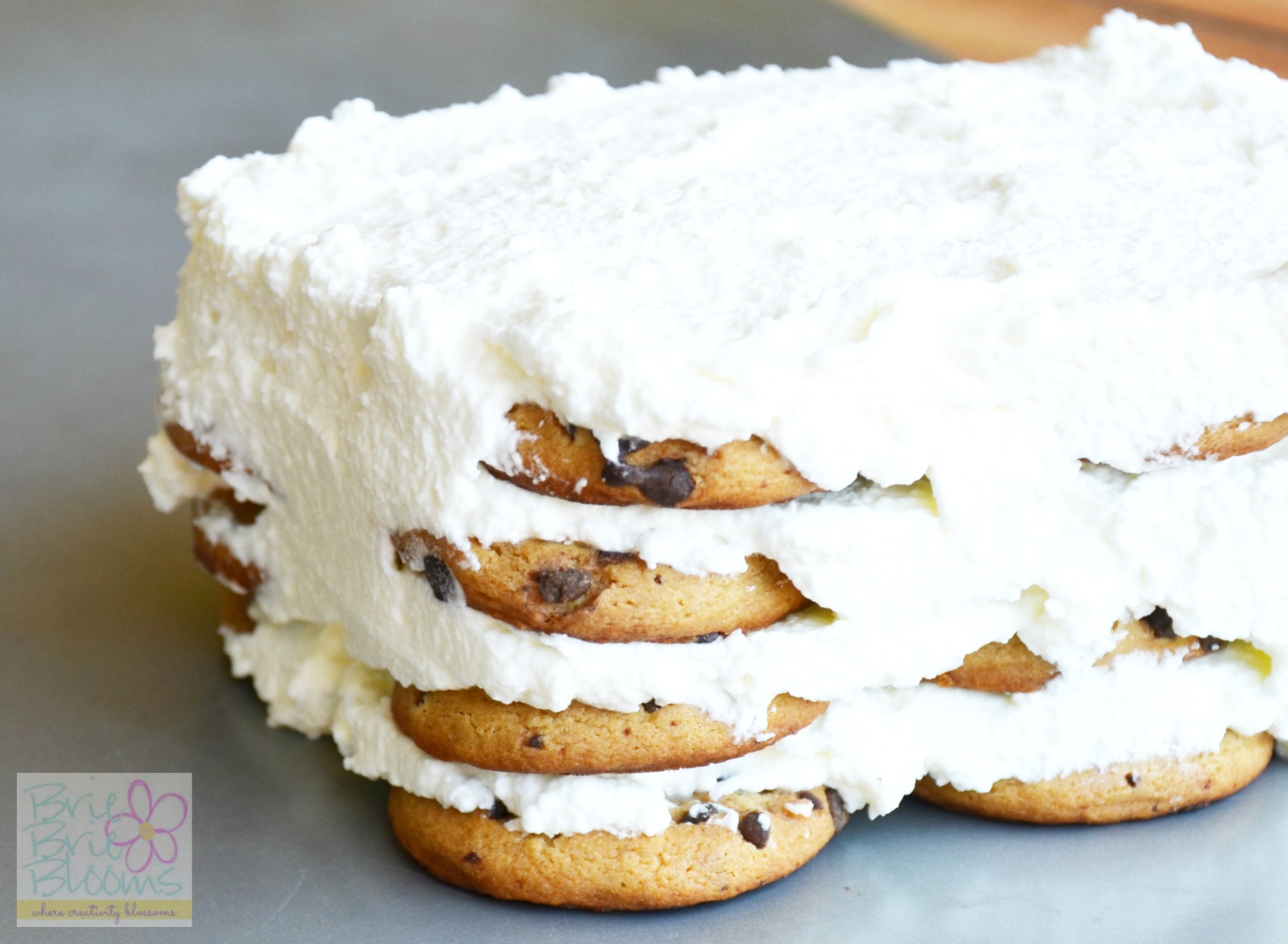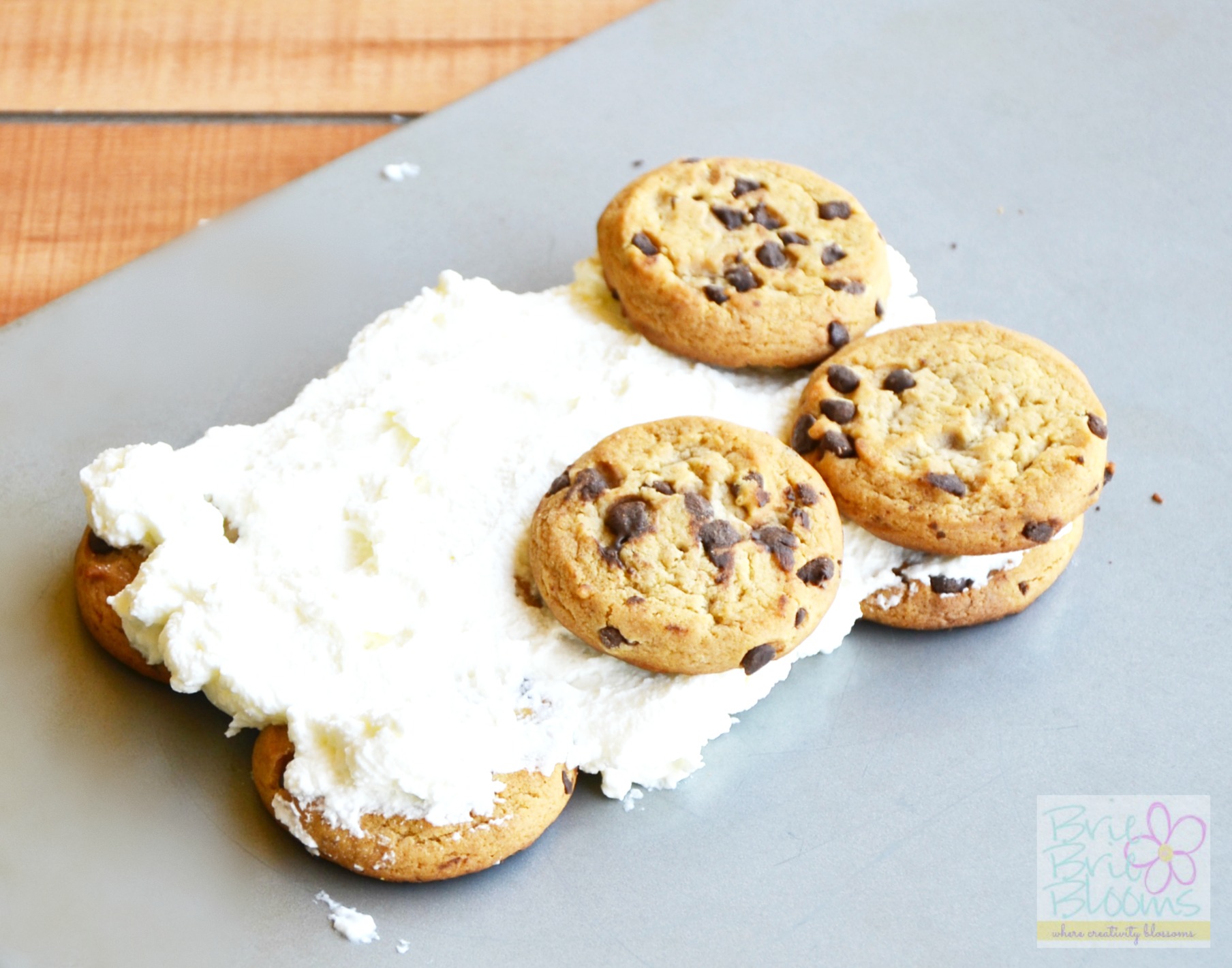 Although it sounds challenging, shaping the cookies and whipped cream is relatively easy. Freeze cake for approximately three hours.
