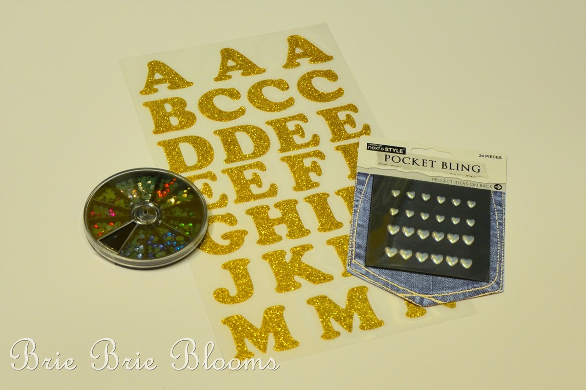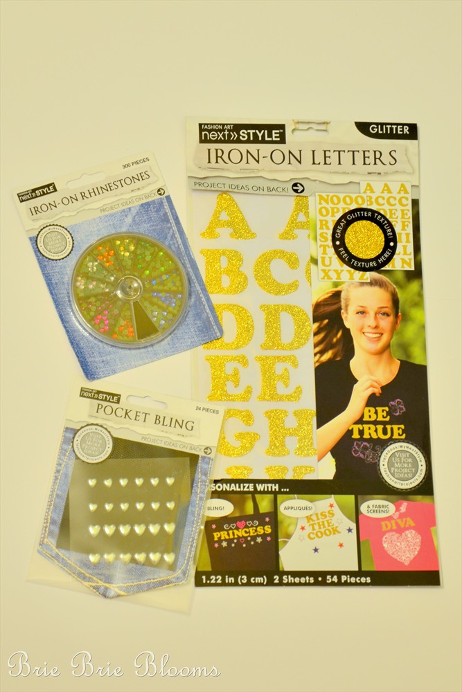 The My Next Style sparkly iron on letters, metallic hearts, and blingy rhinestones were perfect for this project.