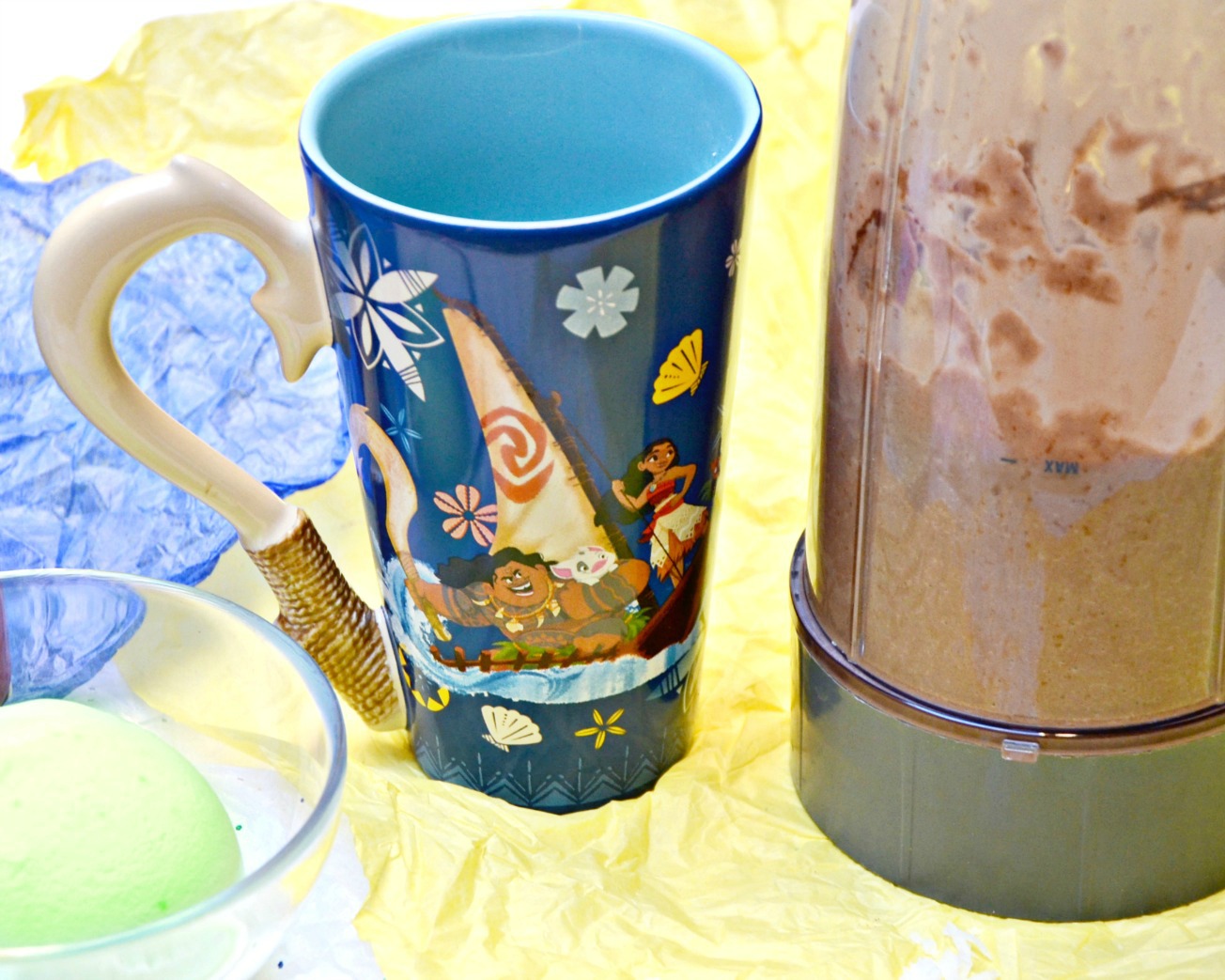 We love these shakes served in a Disney Moana fishhook mug but they taste just as great served in any tall glass.