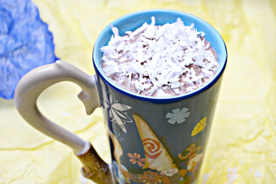 You could leave out the shredded coconut and use cow’s milk instead of coconut milk. We love that Disney fishhook mug too!
