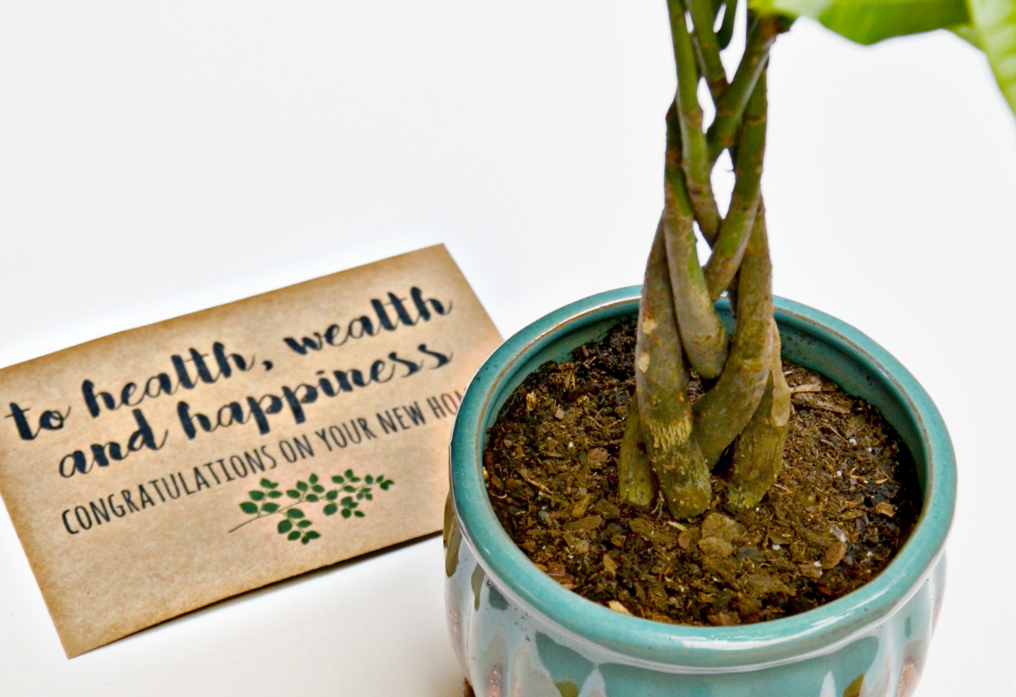 Print the free 5×7 inch housewarming gift card to pair with the money tree plant for a nice new home gift.