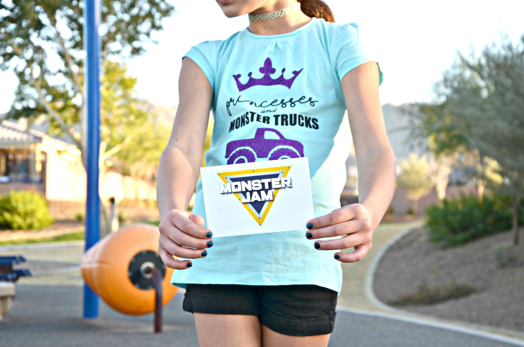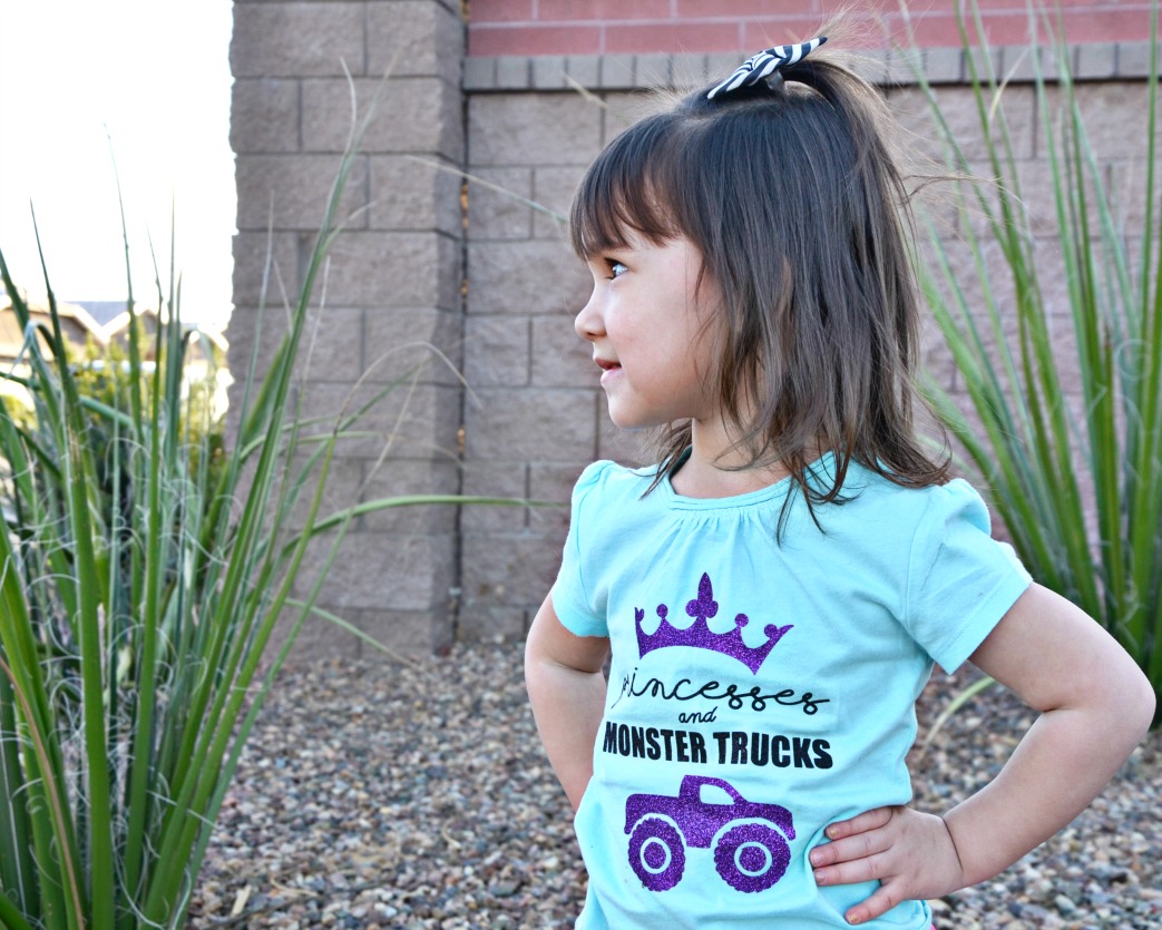 Both my daughters have many different interests and traditional gender roles have never stood in the way of their playtime. My girls equally love pink frilly dresses and stomping through the mud with trucks. Monster Jam® Phoenix is coming to the University of Phoenix Stadium February 3 so I made my daughters monster truck shirts to wear to the event and surprised them with tickets. Our first time attending the action packed show with complimentary tickets will be awesome and my daughters are excited to wear their new shirts!