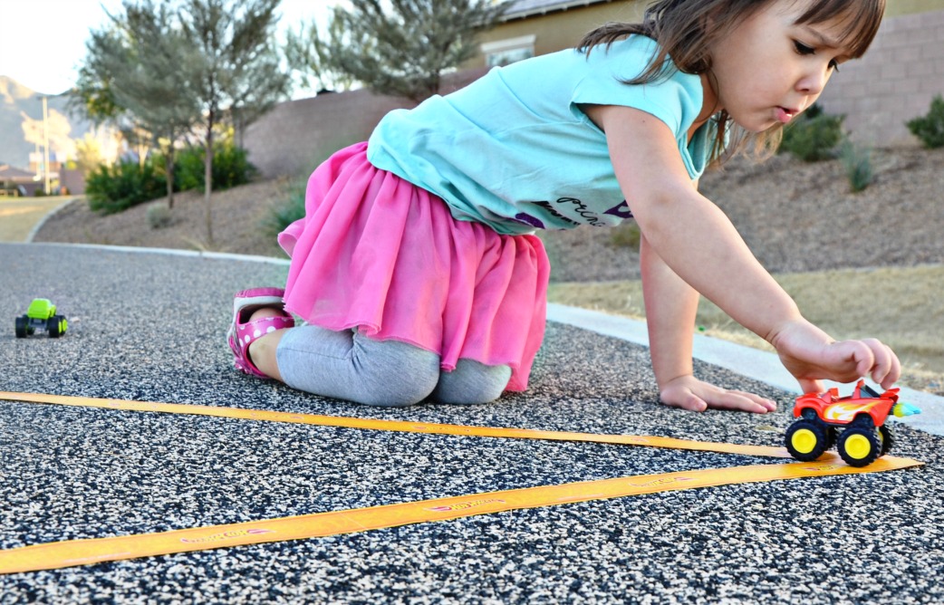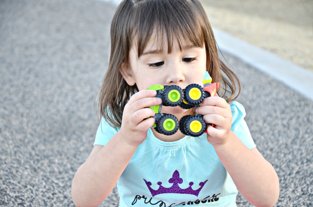 Dressing up like princesses and playing with her monster trucks and Hot Wheels PlayTape (affiliate link) are equal favorite play activities. “Vroom vroom” with a cute little pony tail and pink tutu makes my momma heart happy.