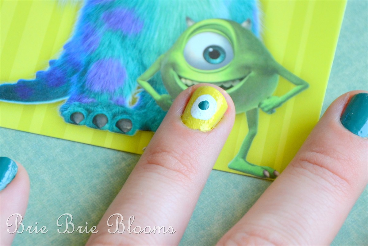 I used a white paint pen to add Mike’s eye on my accent nail. I finished the eye with a small drop of blue in the middle.