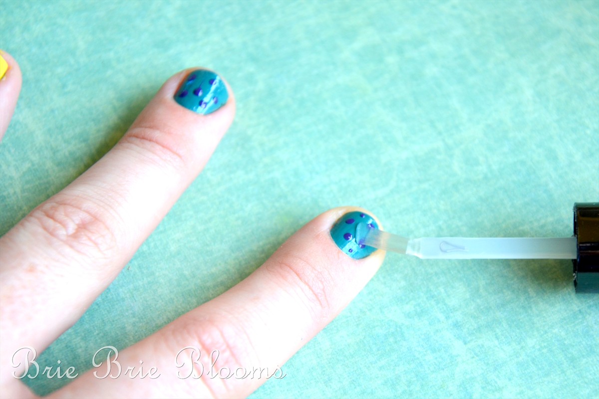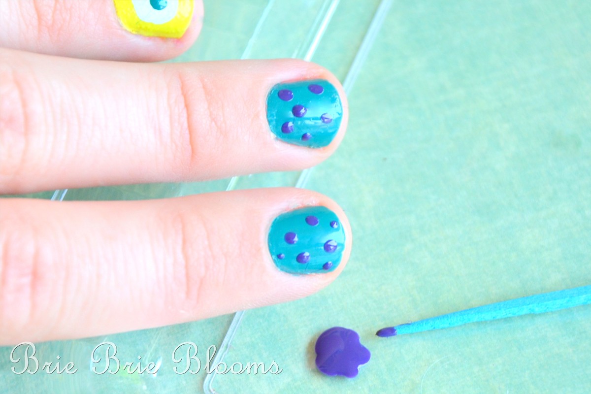 Next I used purple (impulsive) to add dots to all the other nails. The blue with purple dots were the perfect representation of Sully.