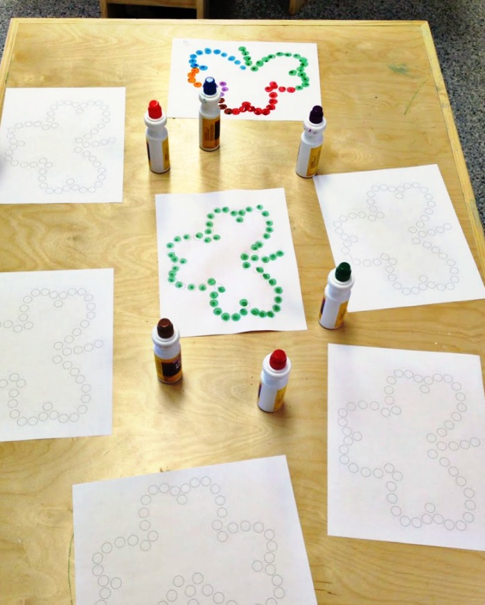 This free shamrock printable can be used multiple times for several activities throughout the week. Use with paint dabbers or decorate with glue and pom poms.
