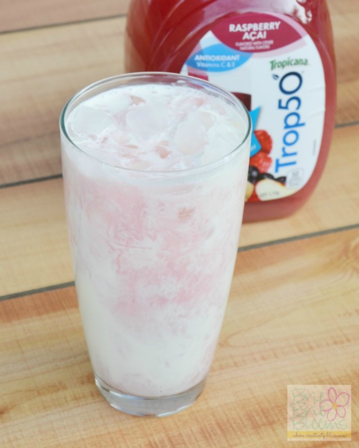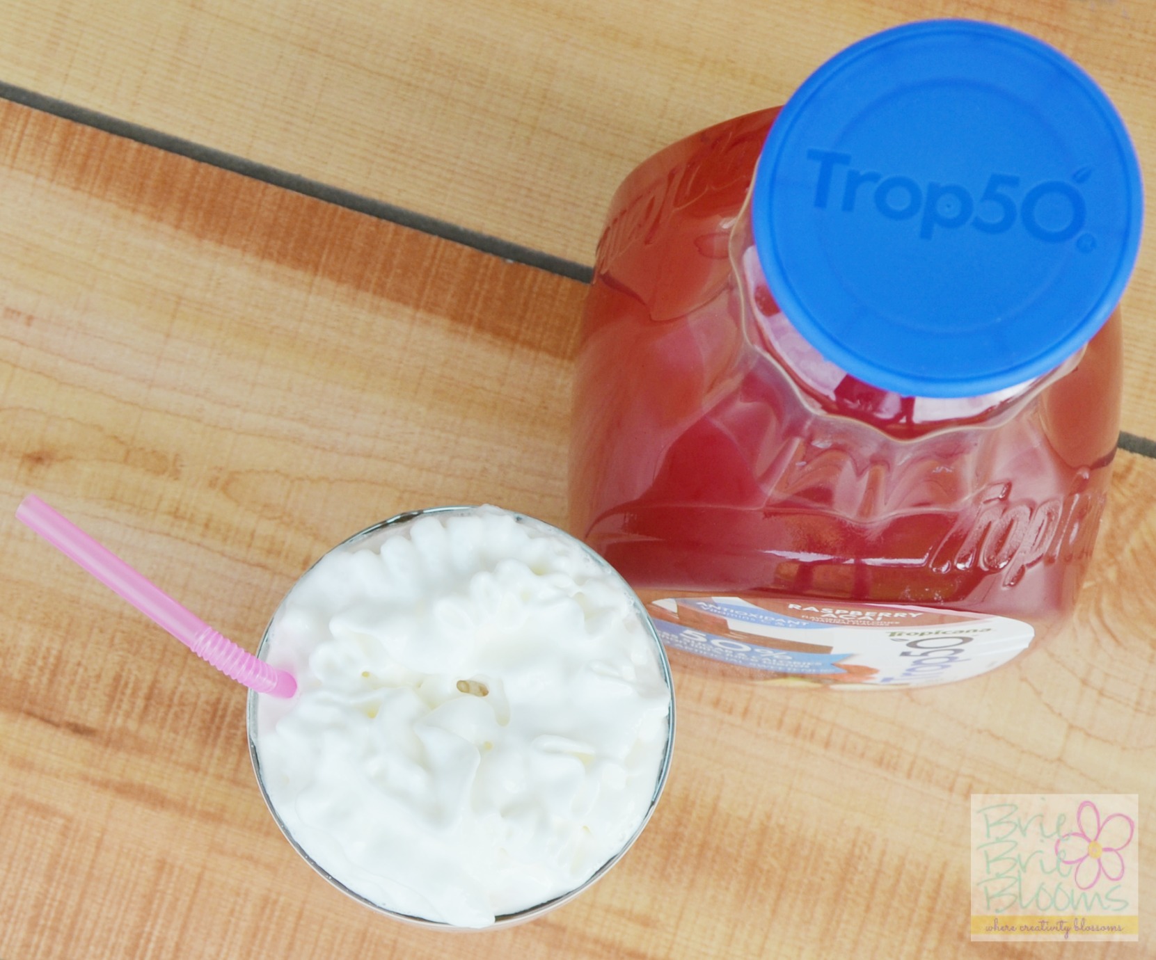 Tropicana Trop50 juices come in a variety of flavors and this drink would be great with any of them. Trop50 has the great taste you expect from Tropicana but with 50% less sugar and calories. Enjoying a Girls Night In with non alcoholic drinks is easy with so many great recipes using Trop50 juices.