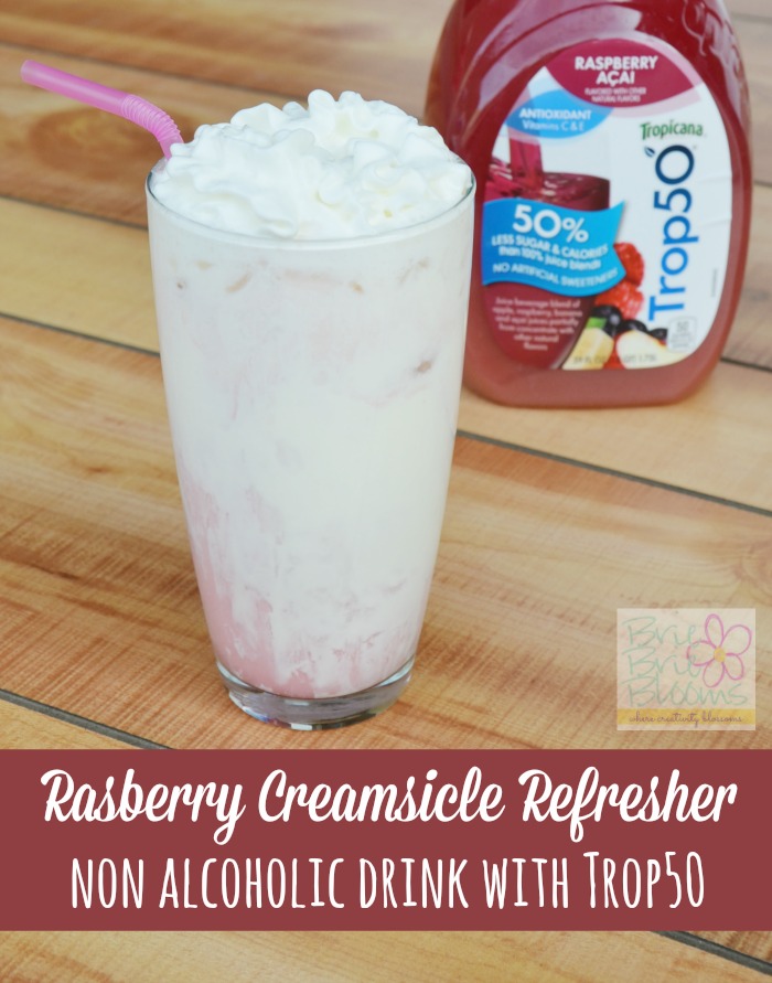 Being a working mom, I never slow down. I teach in my classroom from the morning until early afternoon. Then I run errands and manage my household until early evening when my daughter goes to bed. Then I’m in my home office working until late into the evening and then back up early while everyone else is sleeping to get some work done while my house is quiet. Managing my schedule is challenging but I hold it all together with the help of my schedule and time management prints. Having such a busy schedule I know it’s important to make time to put work away and relax. A girls night in is the perfect way to unwind after a busy week. Although it doesn’t happen often, I enjoy seeing my friends and catching up together. Planning a girls night in is always fun. Knowing most of my friends work just as much as I do and need to feel their best every morning, I’ve recently compiled a great list of non alcoholic drink recipes for a girls night in. Tropicana Trop50 juices are a great ingredient to use in non alcoholic drinks. The low sugar and low calorie juices taste great and have a variety of flavor options. I made a great rasberry creamsicle refresher for a Foodie collection of Girls Night In non alcoholic drinks recipes.