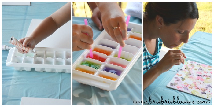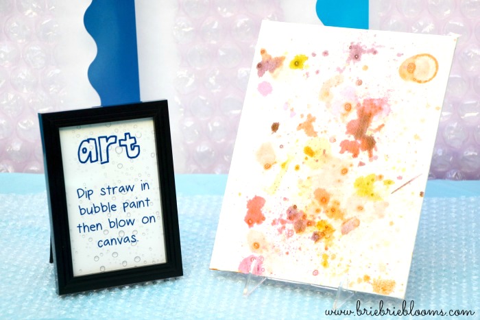 Party guests mixed their own colors in ice cube trays and had fun blowing paint bubbles on their canvases.