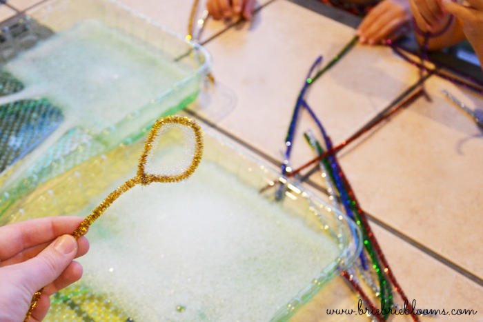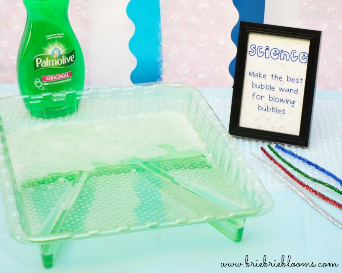 Our party science experiment was figuring out which shape bubble wand was best for blowing bubbles.