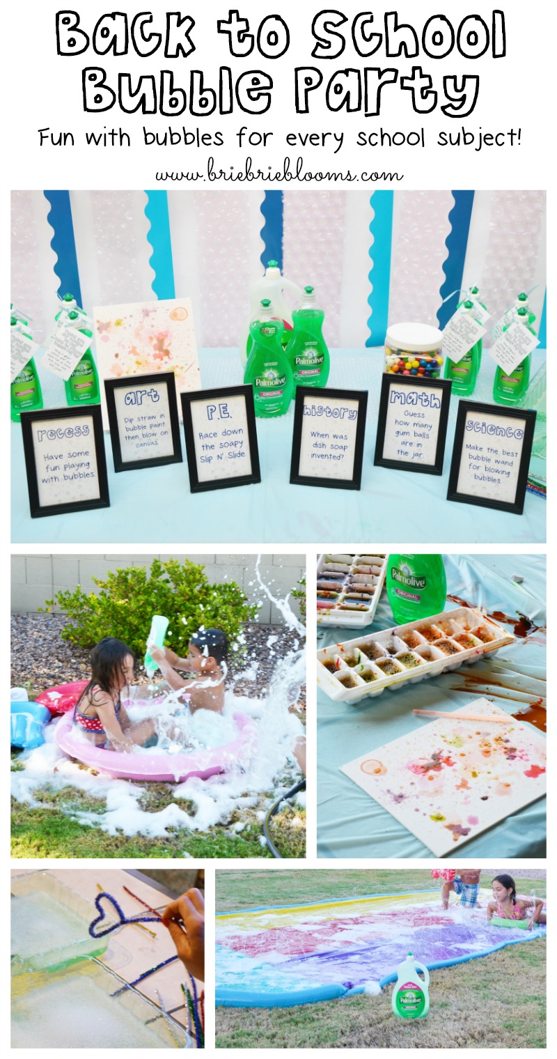 We are already in our second week back at school and my daughter has done a great job transitioning to kindergarten. She has been so excited for each day but by the end of the first week she was exhausted and looking forward to the weekend. I was also looking forward to the weekend because I was surprising her by inviting some friends over for a back to school bubble party. I planned fun with bubbles for every school subject. I knew she would enjoy seeing friends and playing with bubbles. Instead of buying traditional bubble solution I used Palmolive dish soap for all the activities. I had fun planning the party and exploring uses for soap beyond just washing dishes. Our back to school bubble party was a great way to end the summer being outside with friends!