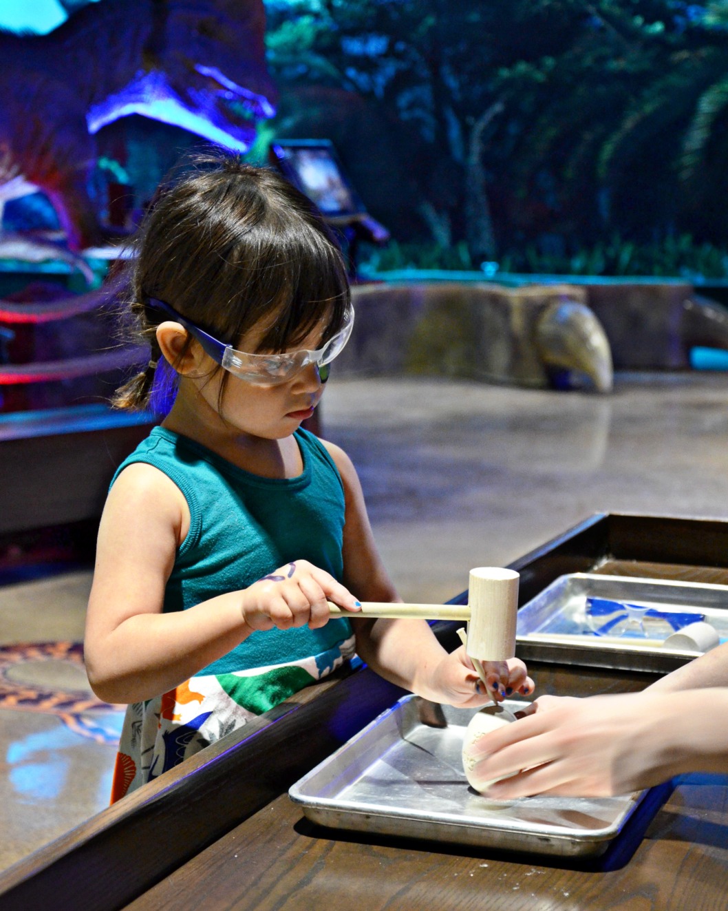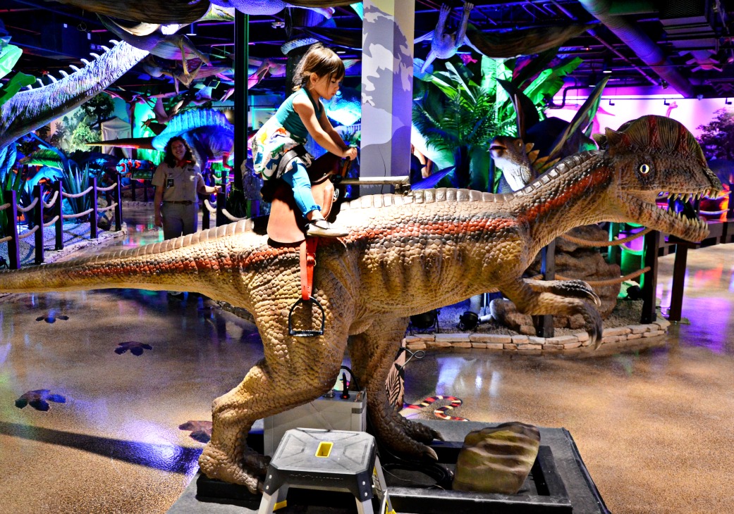 After we walked through the attraction, we participated in all the hands on activities including riding a dinosaur!