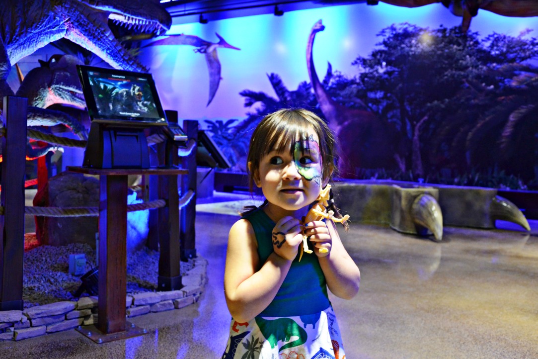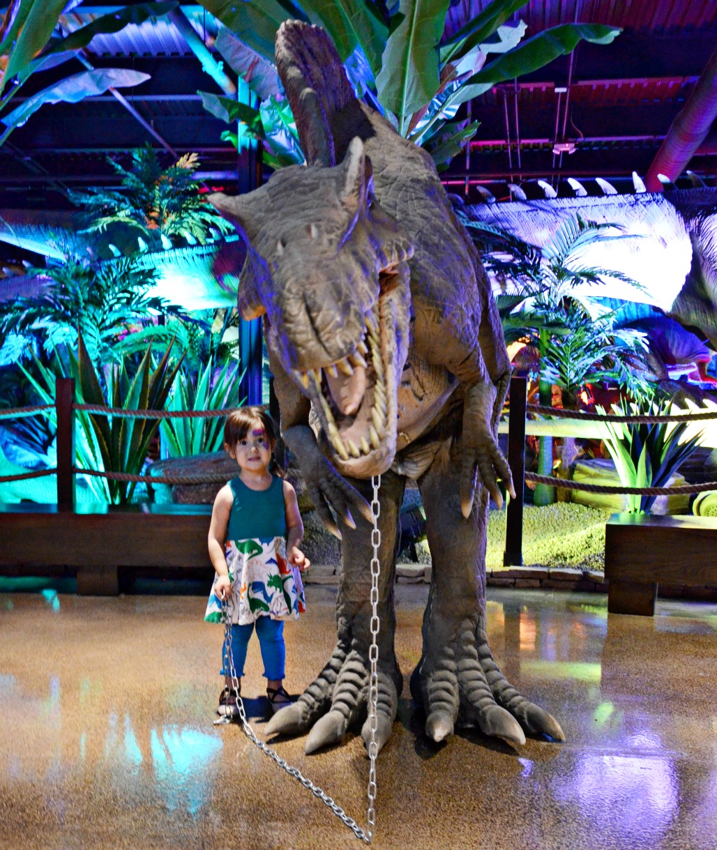 The Arizona dinosaur park is a first of its kind with more than 50 life-sized animatronic dinosaurs that roam through exhibits and true-to-life recreations of prehistoric habitats. The educational experience teaches about dinosaurs with many different hands on activities and entertaining presentations. The permanent attraction opened last month but we just recently visited. Little sister wore her favorite Princess Awesome dinosaur dress for the special occasion. Our visit began meeting our guide that shared facts and walked us through the entire attraction.